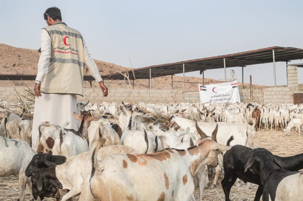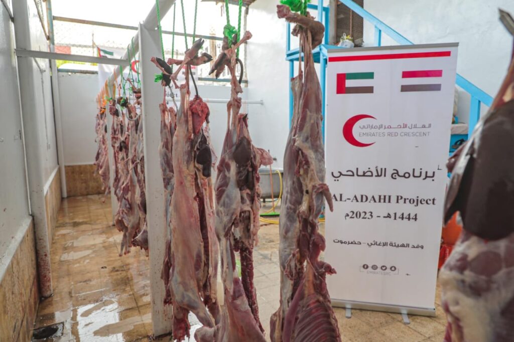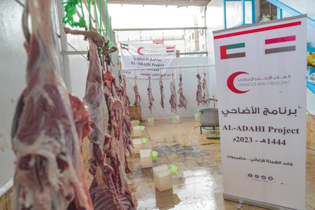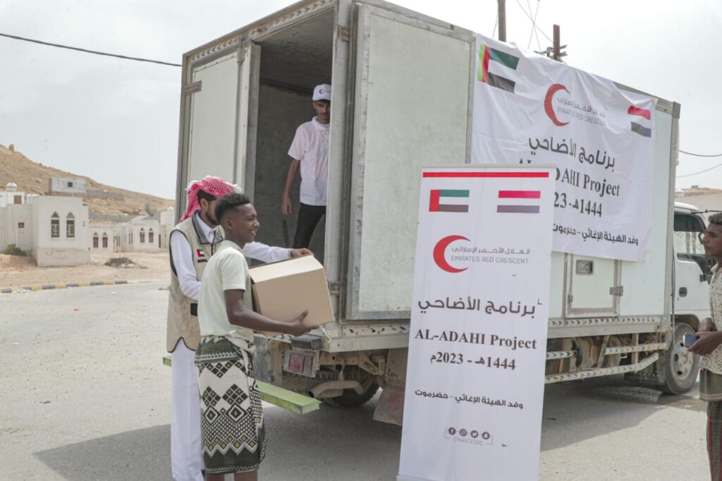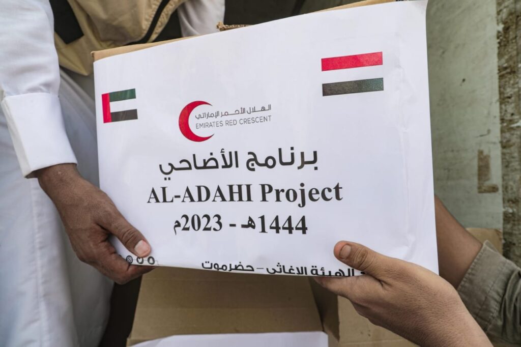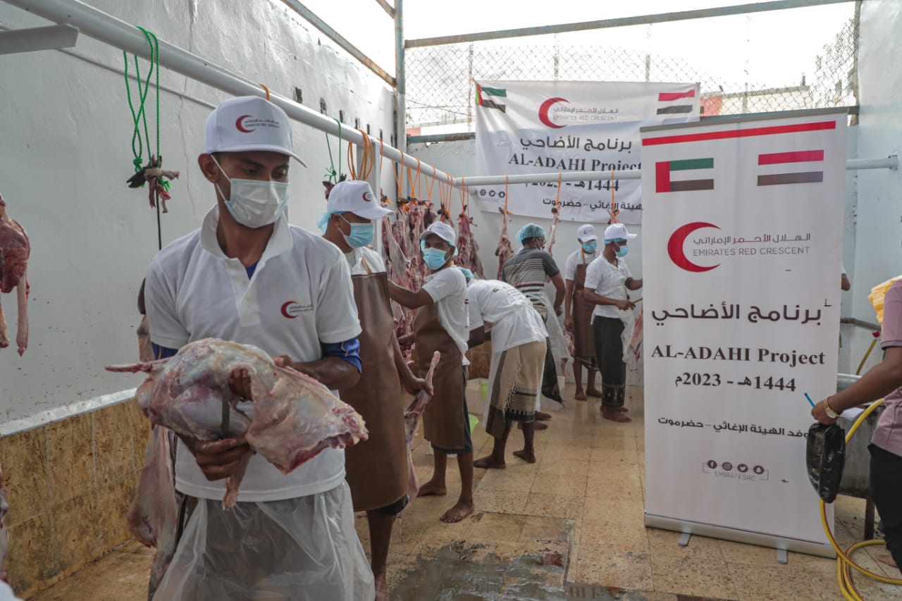 بدعم من دولة الإمارات العربية المتحدة، دشنت هيئة الهلال الأحمر، أمس الأربعاء أول أيام عيد الأضحى المبارك 1444هـ -2023م، برنامج توزيع أضاحي العيد على الأسر الفقيرة والمتعففة في محافظة حضرموت.