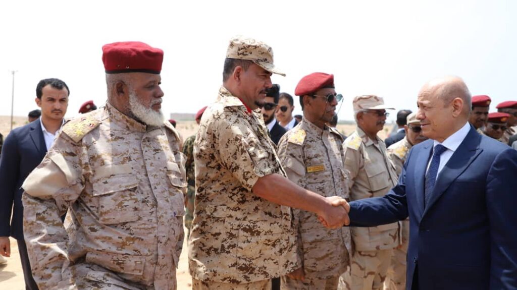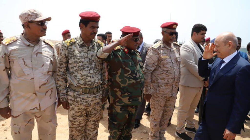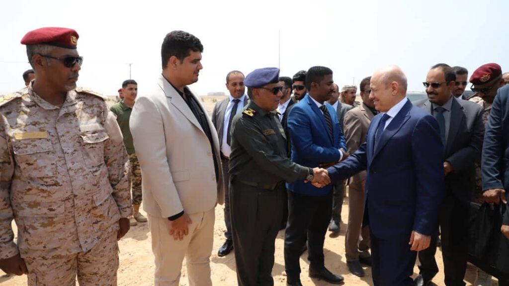 وأهدى قائد المنطقة العسكرية الثانية اللواء ركن طيار فائز التميمي، درع المنطقة لفخامة رئيس مجلس القيادة الرئاسي، عرفانًا بدعمه لقوات العسكرية الثانية ودعم جهود تعزيز الامن بالمحافظة.
