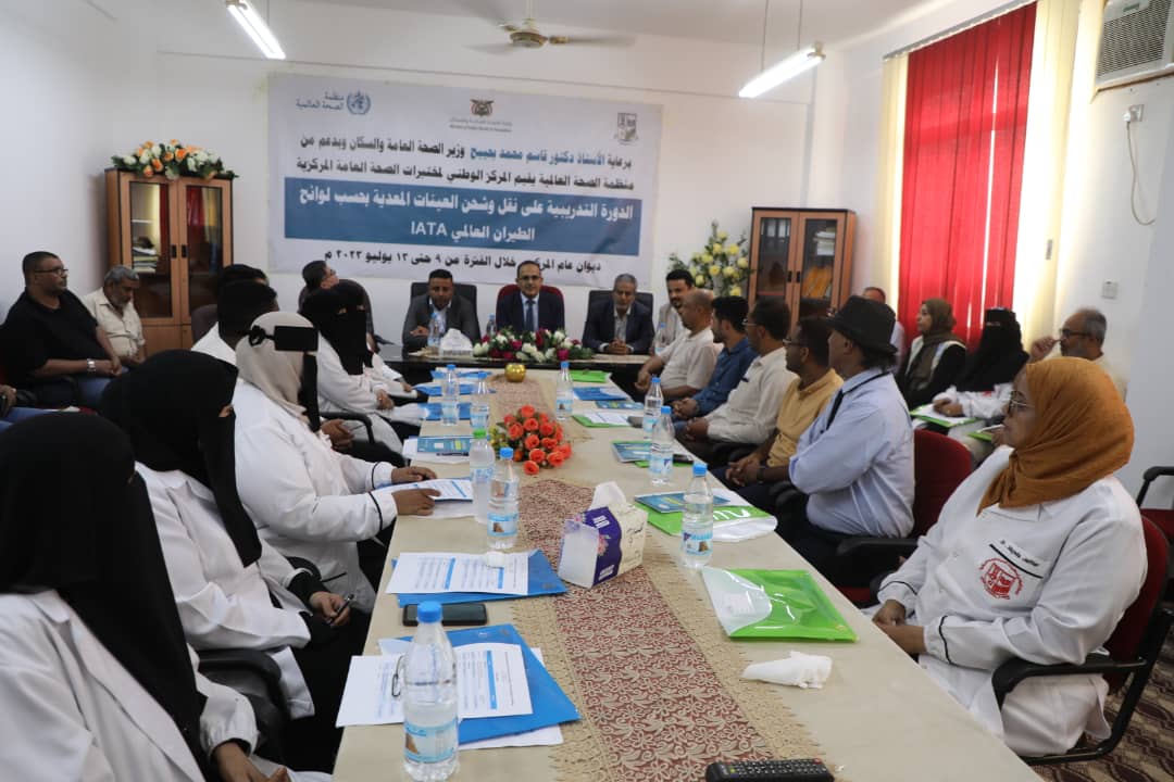 افتتح وزير الصحة العامة والسكان الدكتور قاسم بحيبح بالعاصمة المؤقتة عدن اليوم دورة تدريبية حول نقل وشحن العينات المعدية بحسب لوائح الطيران العالمي والتي ينظمها المركز الوطني لمختبرات الصحة العامة المركزية بالتعاون مع منظمة الصحة العالمية.