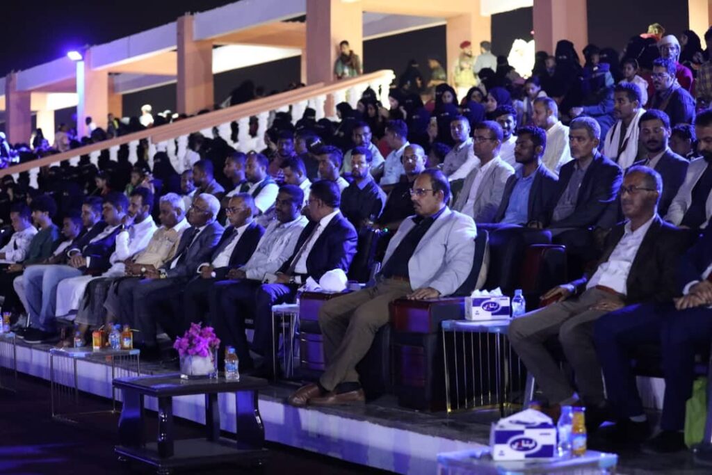 وفي الحفل الذي حضره الامين العام للمجلس المحلي بالمحافظة صالح عبود العمقي، ووكيل المحافظة للشؤون الفنية نائب رئيس اللجنة الفنية للمهرجان المهندس امين بارزيق، ووكيل المحافظة حسن الجيلاني، ووكيلي المحافظة المساعدين لشؤون الشباب فهمي باضاوي، ولشؤون الصحراء محمد الصيعري، ومديري الثقافة بالساحل ماهر بن صالح وبالوادي أحمد بن دويس، واعضاء اللجنة الفنية للمهرجان، ومديرو المكاتب التنفيذية، وجمع غفير من المواطنين الذين امتلأت بهم ساحة العروض ومنصاتها، أحيت فرقة حضرموت الفنية على رقصات الطرب عددًا من الوصلات الفنية بصوت الفنانين عدنان العطاس وعلي باحشوان وهاجر نعمان.