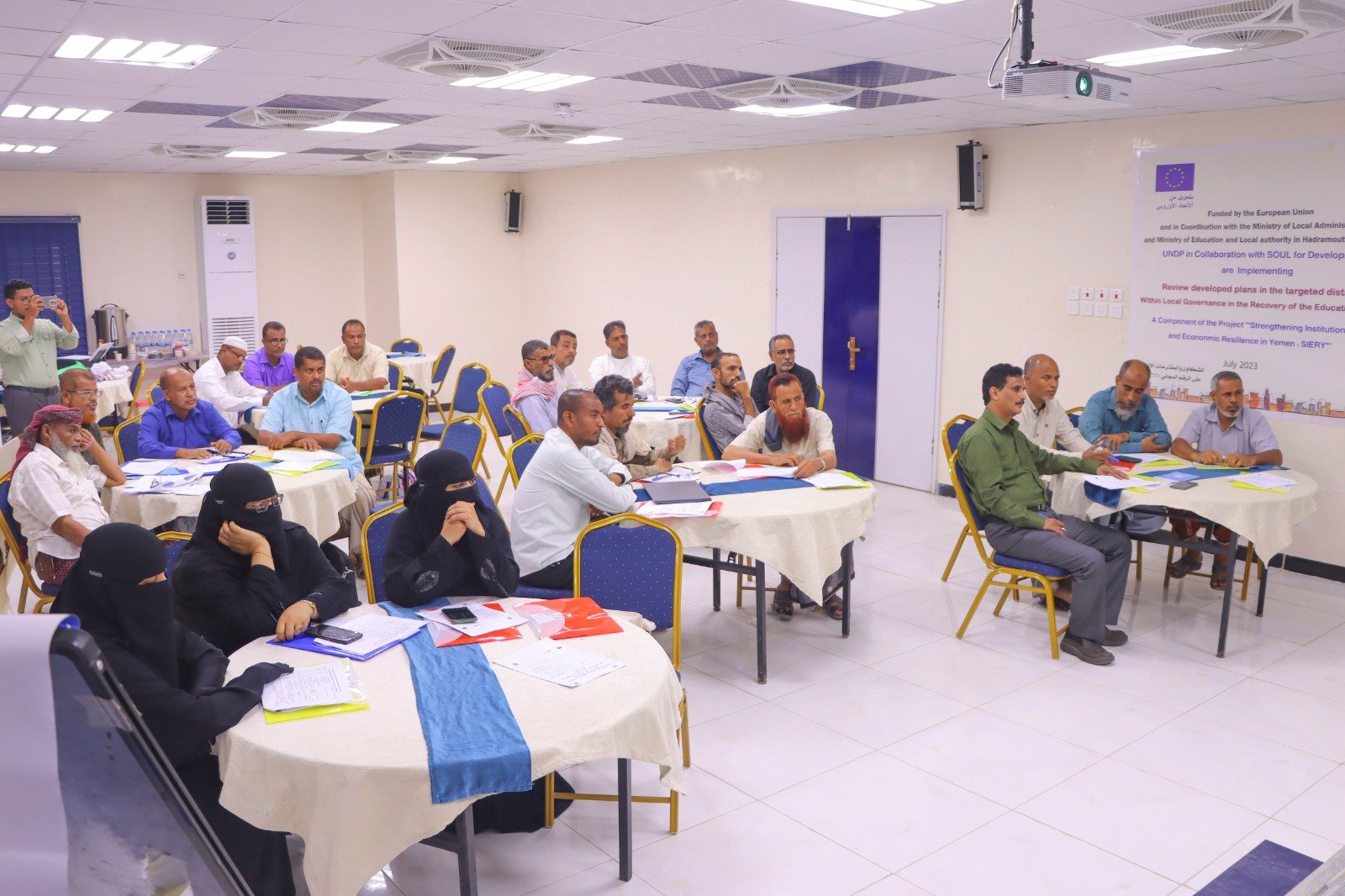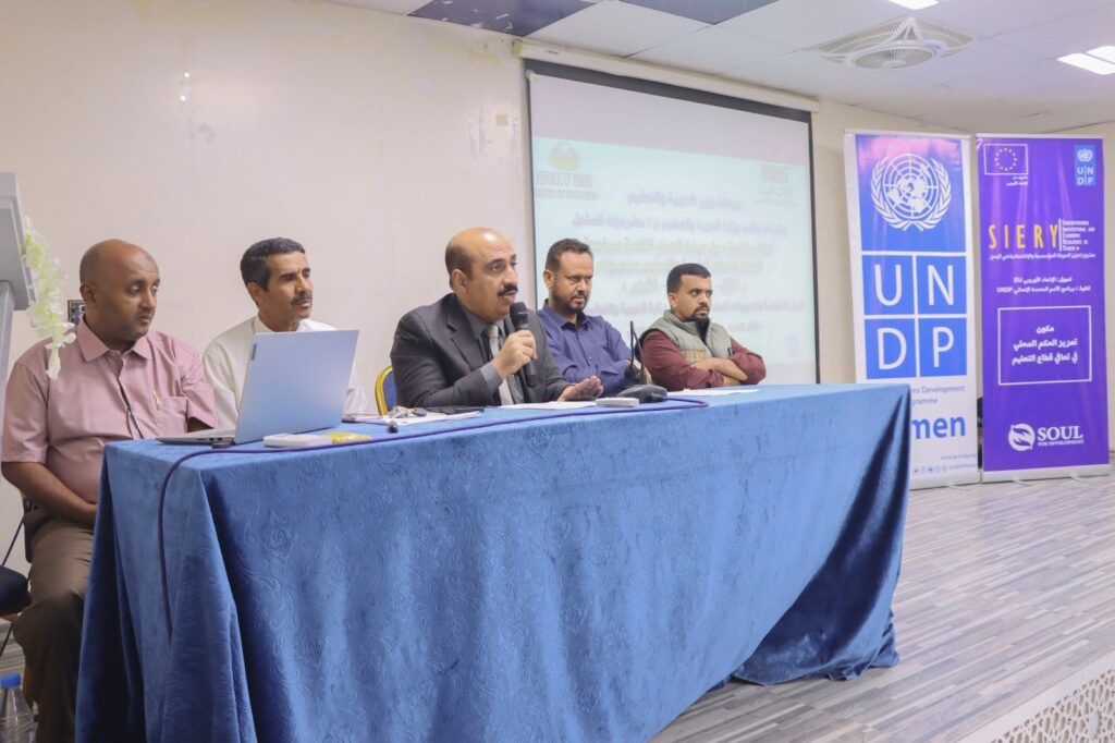 نظم مكتب وزارة التربية والتعليم بساحل حضرموت ورشة مراجعة الخطط الاستراتيجية لاحتياجات إدارات التربية بمديريات( المكلا – غيل باوزير – الشحر ) ضمن مكوّن ( تعزيز الحكم المحلي في تعافي قطاع التعليم ) أحد مكونات مشروع تعزيز المرونة المؤسسية والاقتصادية في اليمن SIERY الممول من الاتحاد الأوروبي EU والذي ينفذه برنامج الأمم المتحدة الإنمائي UNDP بالتعاون مع منظمة سول للتنمية وبالشراكة مع وزارة الإدارة المحلية وبالتنسيق مع وزارة التربية والتعليم والسلطة المحلية بمحافظة حضرموت.