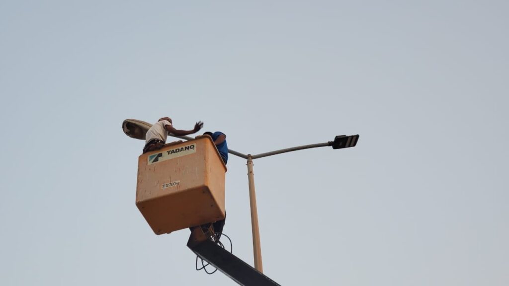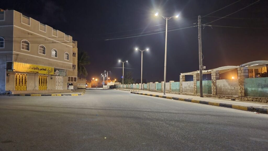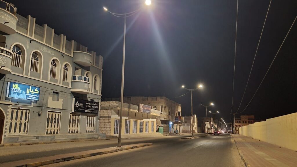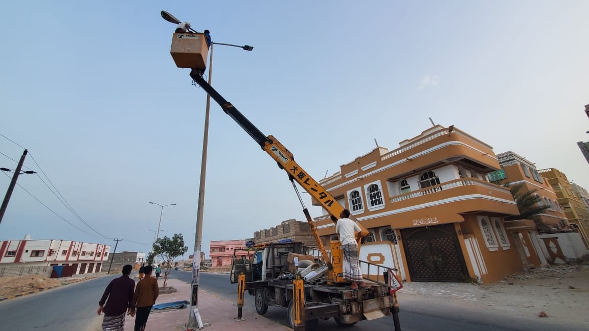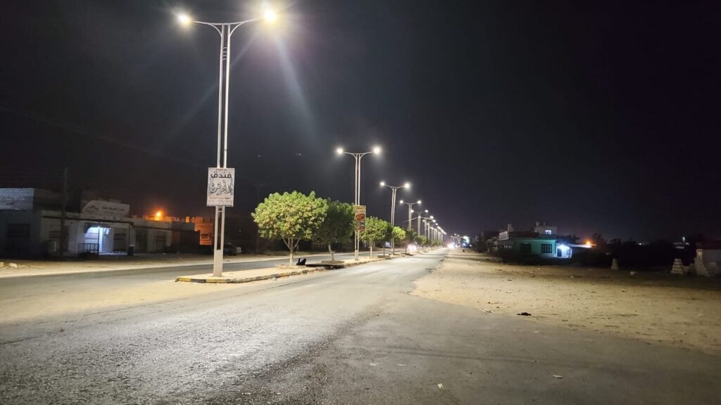حيث اكمل الفريق الهندسي ما نسبته 80% وفق خطة العمل ويندرج هذا العمل ضمن مشروع صيانة و تحديث كشافات إنارة LED لـ 13 كيلو متر تكفل مكتب الأمم المتحدة لخدمة المشاريع ( UNOPS ) بتوريدها، لترشيد استهلاك الطاقة الكهربائية، ولما تتميز به من الكفاءة والجودة وطول العمر الافتراضي، وعدم حاجتها إلى الصيانة الدورية.