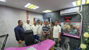 حضر اللقاء الى جانب كوادر الإذاعة، مدير عام مكتب وزارة الإعلام بوادي وصحراء حضرموت،رشيد العامري.