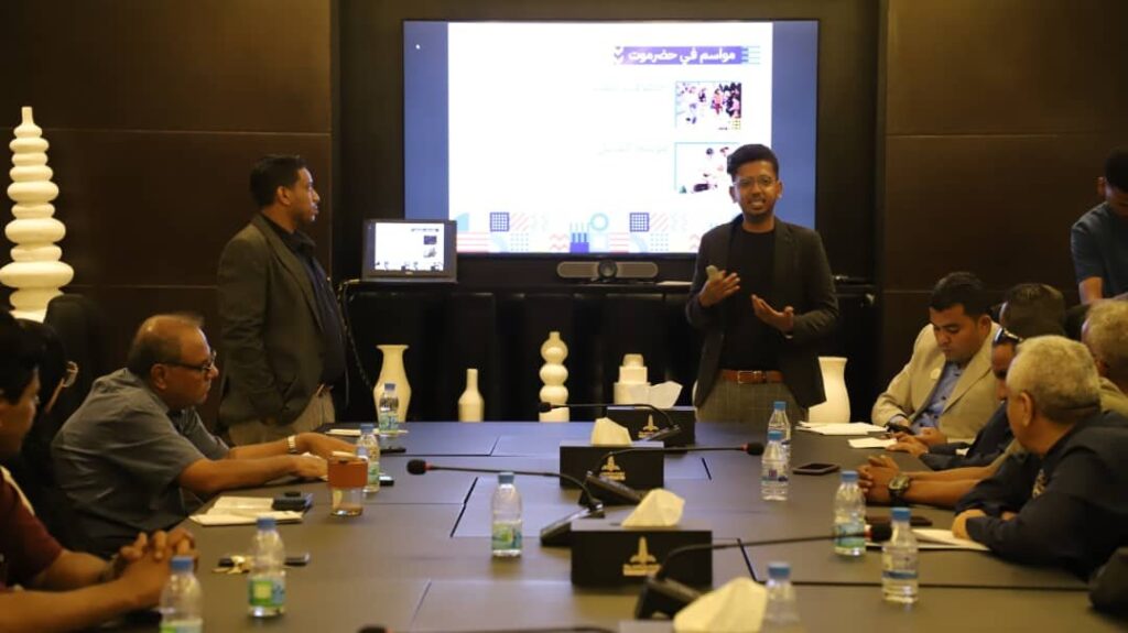 حيث استعرض الإعلاميان الشابان عبدالله برعية وسالم حاتم، فكرة العرض بعنوان “مواسم في حضرموت” التي انبثقت فكرته من النجاح الباهر لموسم البلدة 2023م لتحسين البيئة السياحية والاقتصادية، وبهدف خلق بيئة ايجابية تتجاوز الظروف الصعبة الحالية، وعدم الخنوع لركام الظروف والعمل على تحسين الواقع واستغلال الايجابيات التي تنعم بها حضرموت، واشتملت فكرة العرض على الاهتمام بعدد من المناسبات التاريخية والسياحية التي حرصت السلطة المحلية على الاحتفاء بها وتطويرها، الى جانب فعاليات اخرى تتميز بها حضرموت، ومنها مناسبات “مطلع المطالع والقنيص، وسباق الهجن، ومزاينة الجمال، وتفعيل نشاط مهرجان موسم البلدة، وذكرى انتصار المقاومة الشعبية على الغزو البرتغالي بمدينة الشحر،