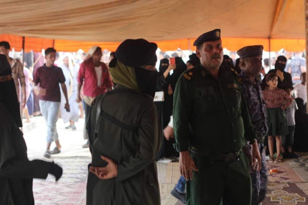 كما بذلت مديرية أمن وشرطة المكلا بكافة مراكزها جهود مكثفه إلى جانب كافة الوحدات المشاركة في التأمين .وبرز دور الشرطة النسائية في تنظيم وتأمين أماكن العائلات بقيادة الملازم منى سعد غرامة مدير إدارة حماية الأسرة والأحداث والشرطة النسائية .