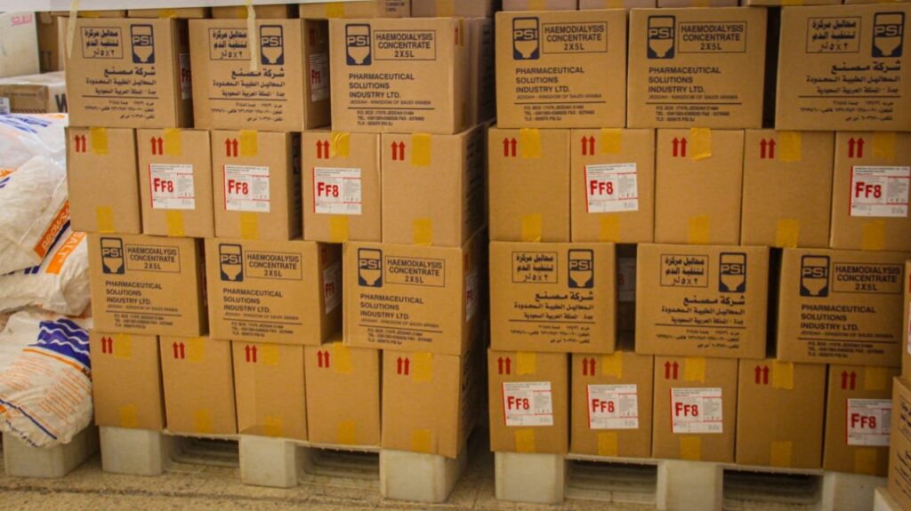 دشن كل من المهندس أمين سعيد بارزيق وكيل محافظة حضرموت للشئون الفنية ، والدكتور محمد صالح الجمحي المدير العام لمكتب وزارة الصحة العامة والسكان بحضرموت الساحل ، بمحازن الدواء بمنطقة جول مسحة ، استلام شحنة كميات من المحاليل ومستلزمات الإستصفاء الدموي الدفعة الرابعة بدعم من مركز الملك سلمان للإغاثة والأعمال الإنسانية ، وذلك برعاية كريمة من معالي وزير الصحة العامة والسكان الأستاذ الدكتور قاسم محمد بحيبح و محافظ محافظة حضرموت الأستاذ مبخوت مبارك بن ماضي .