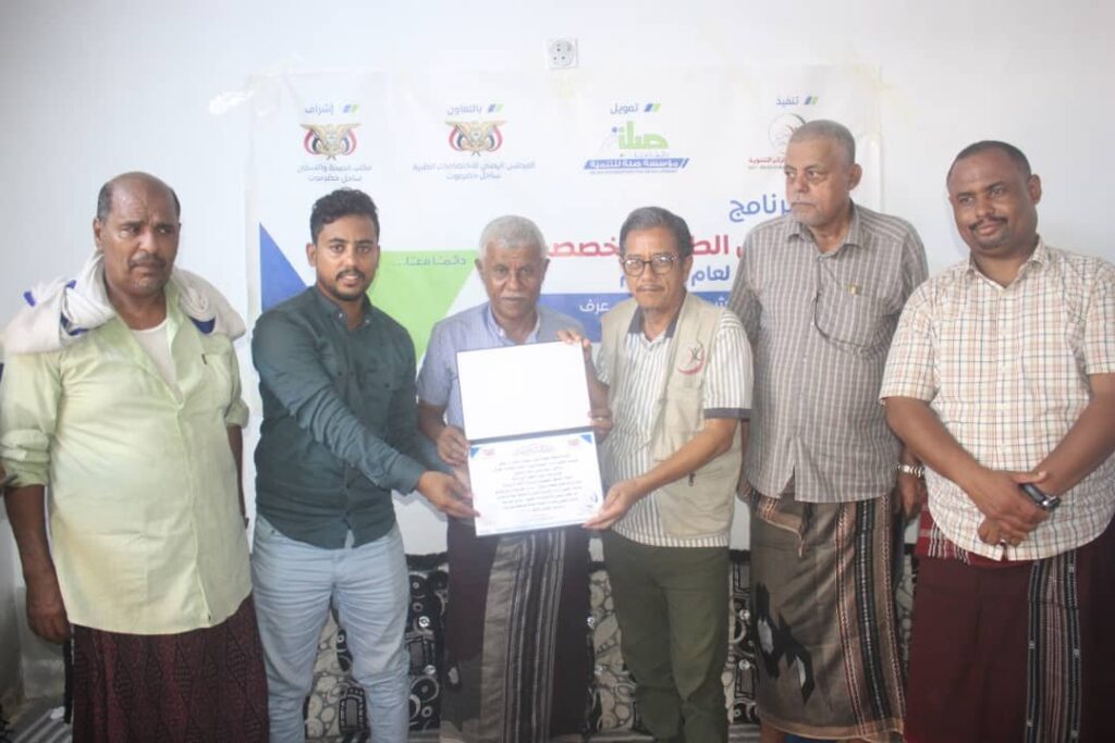 وفي ختام القافلة تقدم مدير عام مكتب الصحة العامة والسكان بساحل حضرموت بمعية مدير عام المديرية ورئيس المجلس اليمني للاختصاصات الطبية بساحل حضرموت بتكريم الكادر الطبي ومؤسسة صلة للتنمية ومؤسسة الطبيب الزائر التنموية بشهادات شكر وتقدير لجهودهم في تنفيذ القافلة الطبية التخصصية المجانية بمنطقة وادي عرف .