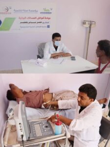 حيث بلغ أجمالي الحالات المستفيدة 356 حالة منها 278 إناث و78علی النحو التالي :- عيادة أمراض النساء والتوليد الاستشارية بقيادة البروفيسور عامر سالمين بلعفير حيث بلغ عدد الحالات المستفيدة 103 حالة منها 97 من الإناث تم الكشف عليها كآفة بجهاز السونار وعدد 6 من الذكور ، عيادة الأمراض الباطنية وفيها الدكتور الأخصائي هاني مبارك مباركوت حيث تم معاينة 64 حالة منها 57 من الإناث و7 حالات ذكور وبفئات عمرية مختلفة ، عيادة المسالك البولية وفيها الدكتور الاخصائي عمر عامر بلعفير ؛ حيث تم معاينة 57 حالة منها 40 حالة من الإناث و17 حالة من الذكور تم الكشف علی 34 حالة بجهاز السونار ، عيادة الأطفال وفيها الدكتور الأخصائي محمد سعيد باربيد حيث بلغ عدد الحالات المستفيدة 132 حالة منها 84 إناث و48 ذكور وبفئات عمرية مختلفة .
