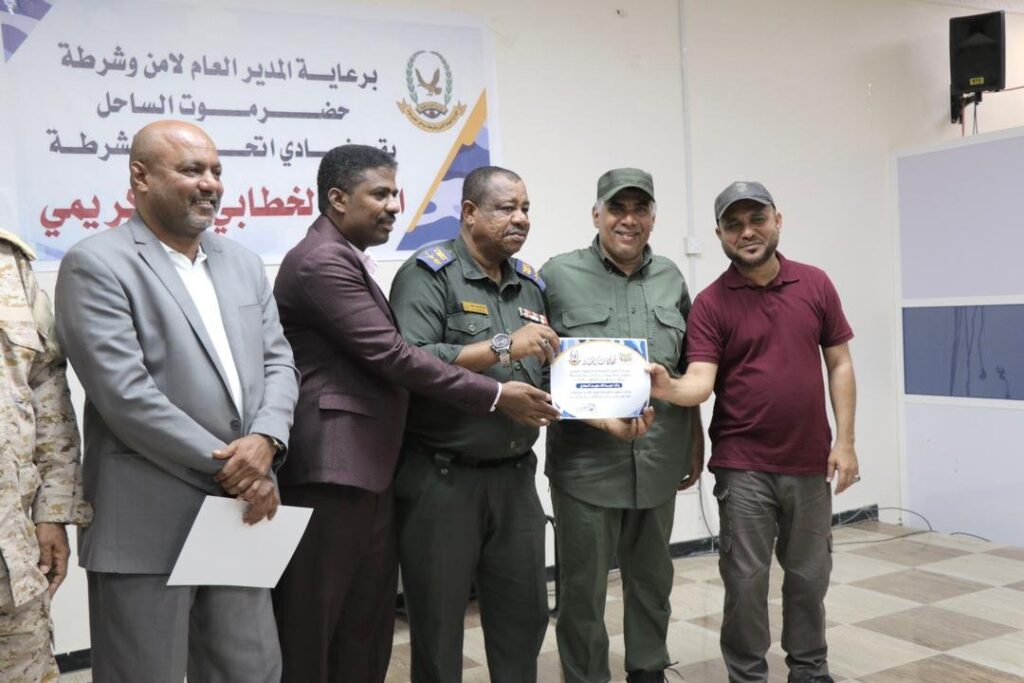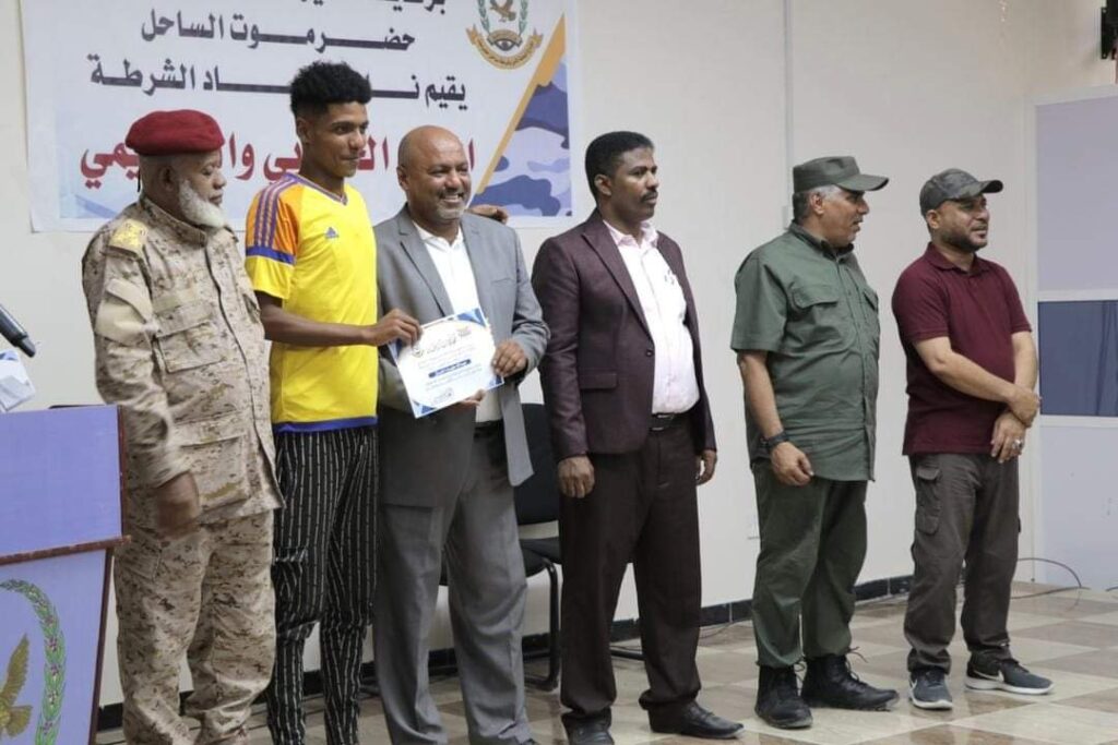 شهد المدير العام لأمن وشرطة ساحل حضرموت العميد مطيع سعيد المنهالي المنهالي، اليوم الثلاثاء بقاعة الفقيد اللواء أحمد سعيد المحمدي بالمكلا، الحفل الخطابي والتكريمي لنادي اتحاد الشرطة الذي فاز بكأس بطولة دوري التحرير الذي نظمته المنطقة العسكرية الثانية للألوية والوحدات العسكرية ونادي الشرطة.