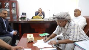 وقع اليوم بالمكلا على اتفاقية التسليم الأولي لارض المنطقة الصناعية غرب مدينة الشحر بين مكتب الصناعة والتجارة وشركة حضرموت لتنمية واستثمار المناطق الصناعية المحدودة.