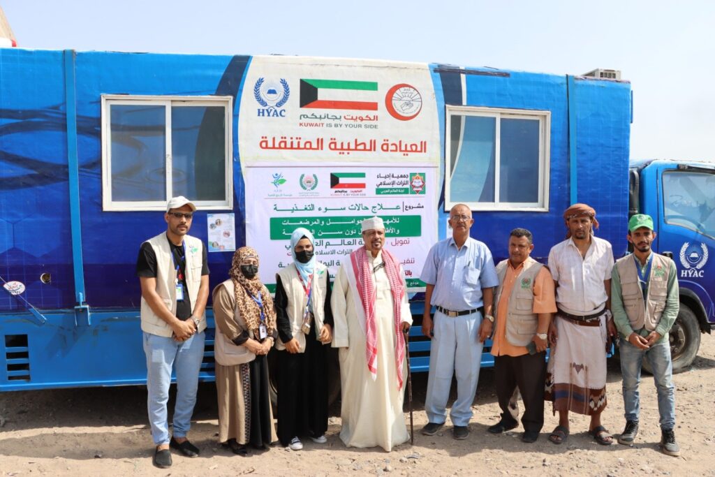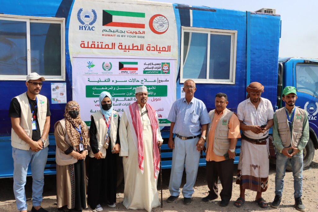 مشروع / علاج حالات سوء التغذية ضمن العيادة الطبية المتنقلة المنفذ من قبل /جمعية الحكمة اليمانية الخيرية بالتعاون والشراكة مع مؤسسة الاريج للتنمية الممول من / لجنة العالم العربي جمعية احياء التراث الاسلامي . الكويت