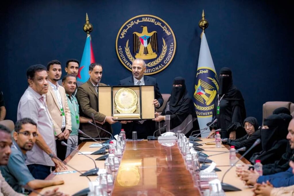 وفي ختام اللقاء، سلّم رائد محمد باجابر، رئيس المجلس التنسيقي، درعاً تقديرياً للرئيس الزبيدي، نظير جهوده ودعمه المستمر لإنجاح المجلس التنسيقي في خدمة المجتمع المدني بمحافظة حضرموت.