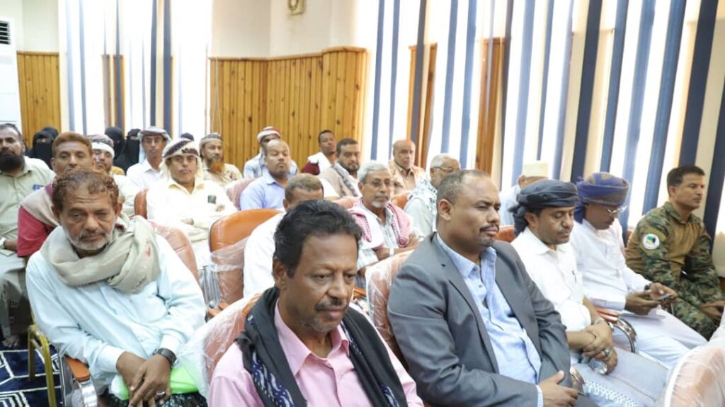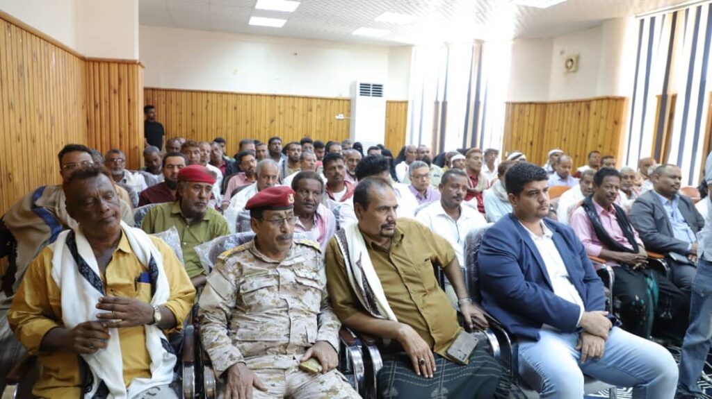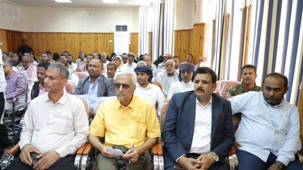 وعقد المحافظ اجتماعًا موسعًا بقيادة السلطة المحلية واعضاء المكتب التنفيذي والمشائخ والاعيان وممثلي الاحزاب ومنظمات المجتمع المدني وقطاعي المرأة والشباب بالمديرية، بحضور الامين العام للمجلس المحلي بالمحافظة صالح عبود العمقي، ووكيل المحافظة للشؤون الفنية المهندس امين بارزيق، ومدير عام المديرية محمد سعيد باخوار، وعدد من مديري المكاتب والمؤسسات الحكومية.