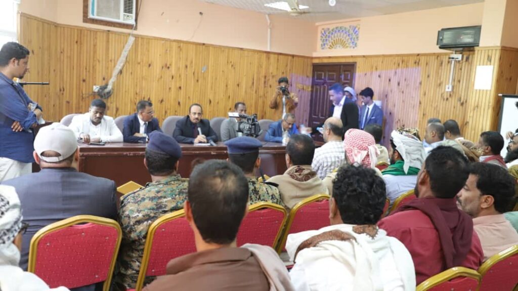 ووجه المحافظ بايقاف العمل بمكتب مصلحة العقار بالمديرية وايقاف اي صرف في المصالح العامة حتى استكمال عمل لجنة تقييم لعمل المكتب، كما وجه باعتماد انشاء جسري المصينعة ورأس باغشوة التي تسببت في حوادث سير ، واعادة تأهيل الخط الدولي من المكلا الى الريدة بتمويل من صندوق صيانة الطرق، داعيًا الى وحدة الصف والكلمة بين جميع ابناء المحافظة ومساندة السلطة المحلية لتوفير مزيد من الاحتياجات لابناء المديرية.