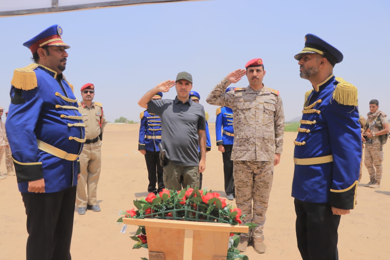 وضع مدير دائرة العمليات العميد الركن يحيى العيزري والناطق الرسمي للمقاومة الوطنية العميد الركن صادق دويد، اليوم، إكليلاً من الزهور بمقبرة الشهداء بمدينة مأرب.
