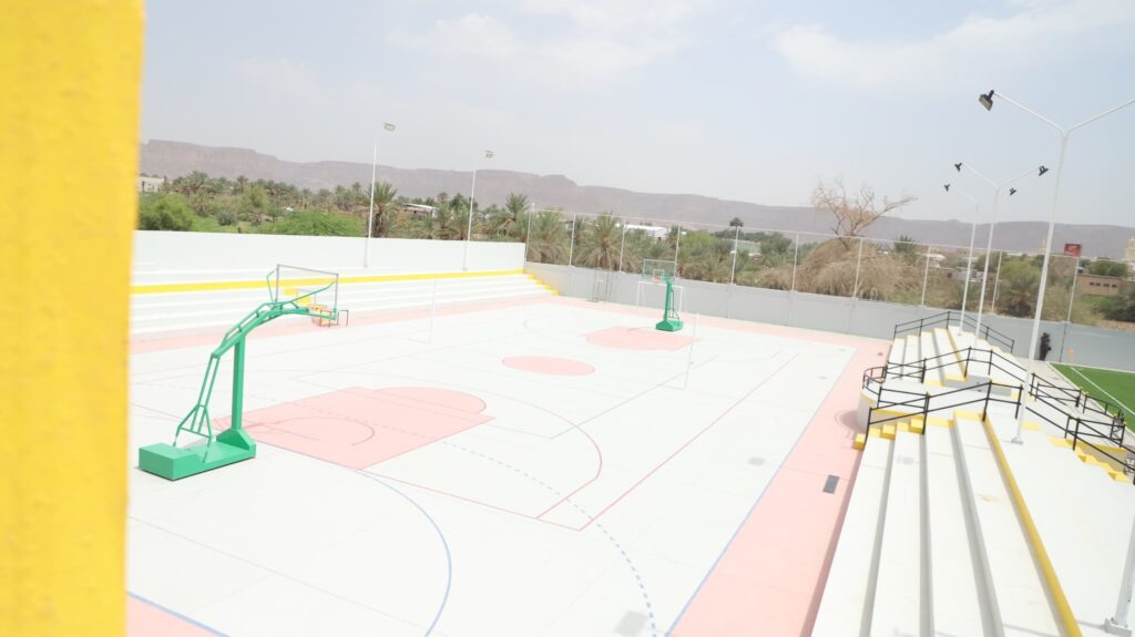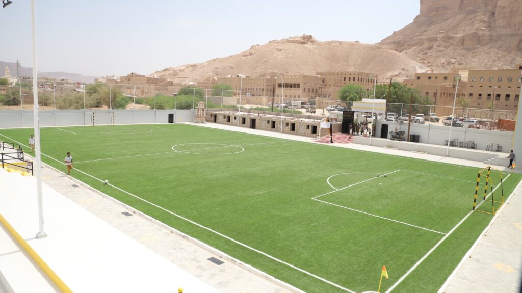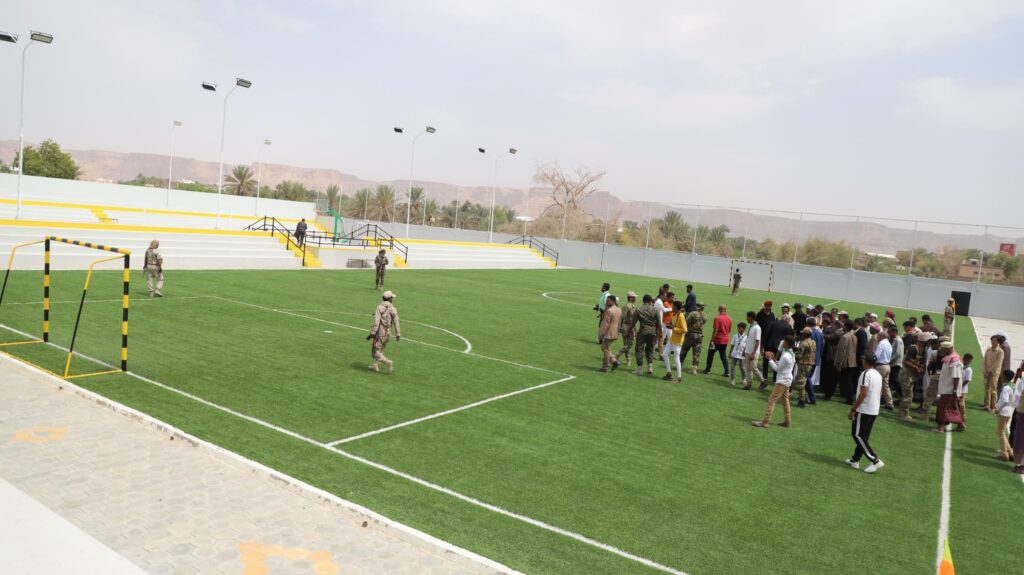وتفقد المحافظ ومعه وكيل المحافظة لشؤون مديريات الوادي والصحراء عامر سعيد العامري، مكونات المنشأة التي تشمل ملعبًا معشبًا بمساحة 1500 متر مربع، وملاعب للكرة الطائرة والسلة وكرة اليد، ومبانٍ للادارة وبوفية.