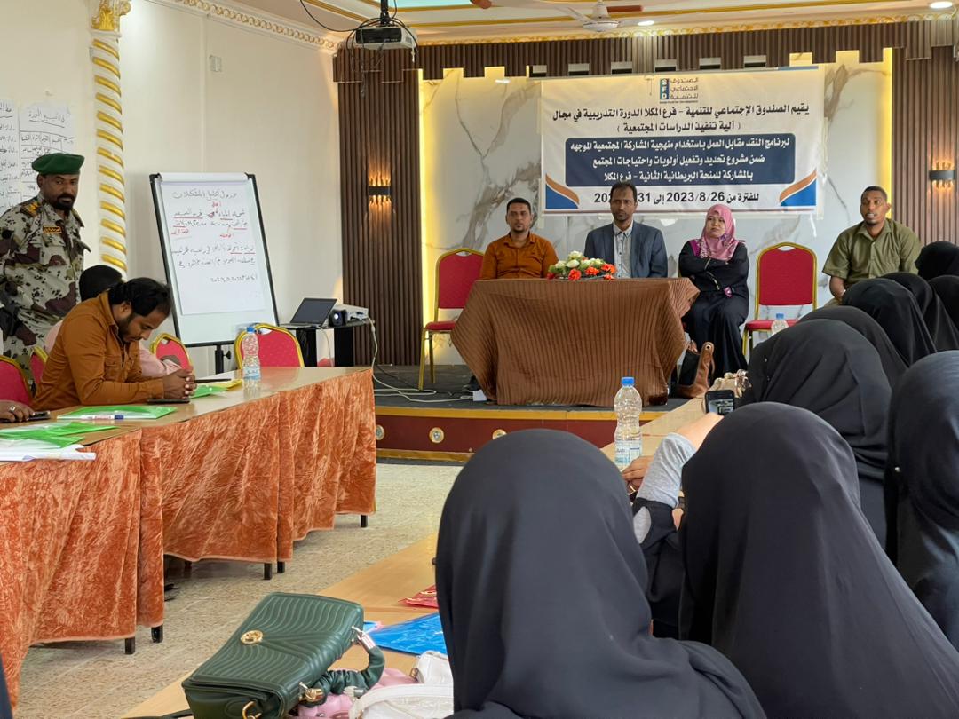 وتمحور البرنامج التدريبي حول الاهتمام بشرح تفصيلي لجميع الأدوات البحثية التي يحتاجها كل استشاري أثناء عمله الميداني،وماتعكسه الأدوات من بيانات دقيقة لدى مسؤولي برنامج النقد مقابل العمل (الأشغال كثيفة العمالة) يستطيعوا من خلالها معرفة المجتمعات الأكثر احتياجا ضمن استهدافاتهم المستقبلية في مختلف المديريات والقرى التي تندرج ضمن نطاق الصندوق الاجتماعي للتنمية فرع المكلا.