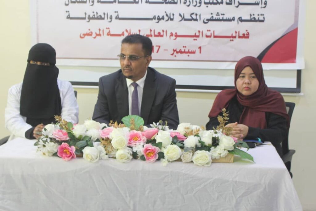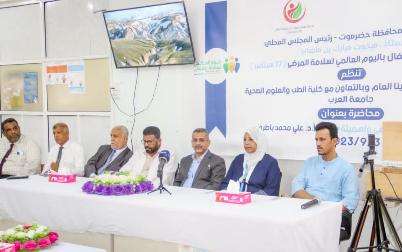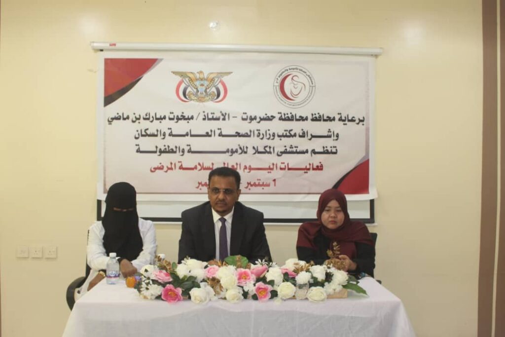 في السياق ذاته، دشن وكيل محافظة حضرموت للشؤون المالية والإدارية الدكتور احمد سالم باصريح ومعه وكيل محافظة حضرموت حسن سالم الجيلاني، ونائب مدير عام مكتب وزارة الصحة العامة والسكان عبدالله مرعي بن طالب، فعاليات اليوم العالمي لسلامة المرضى في هيئة مستشفى ابن سيناء العام بالمكلا.