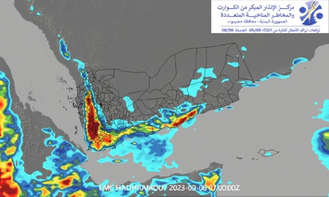 تشير آخر التنبؤات العددية وتحاليل خرائط الطقس إلى تأثر أجزاء من محافظة حضرموت وبقية المحافظات الغربية بحالة من عدم الاستقرار الجوي النسبي تبدأ ذروتها من مساء الأربعاء وفجر الخميس إلى مساء الجمعة ، حيث تبدأ تشكيلات من السحب المنخفضة الركامية بالتدفق على أجزاء من مديريات الساحل والأرياف المحيطة بها يرافقها هطول أمطار متفرقة ، تنتقل تدريجيا خلال فترات من الظهيرة إلى سحب رعدية مصحوبة بهطول امطار غزيرة تشمل أجزاء من مديريات وقرى مرتفعات الساحل و الهضبة الجنوبية والغربية واجزاء من رؤوس الهضاب والأودية لوادي حضرموت الغربية منها.