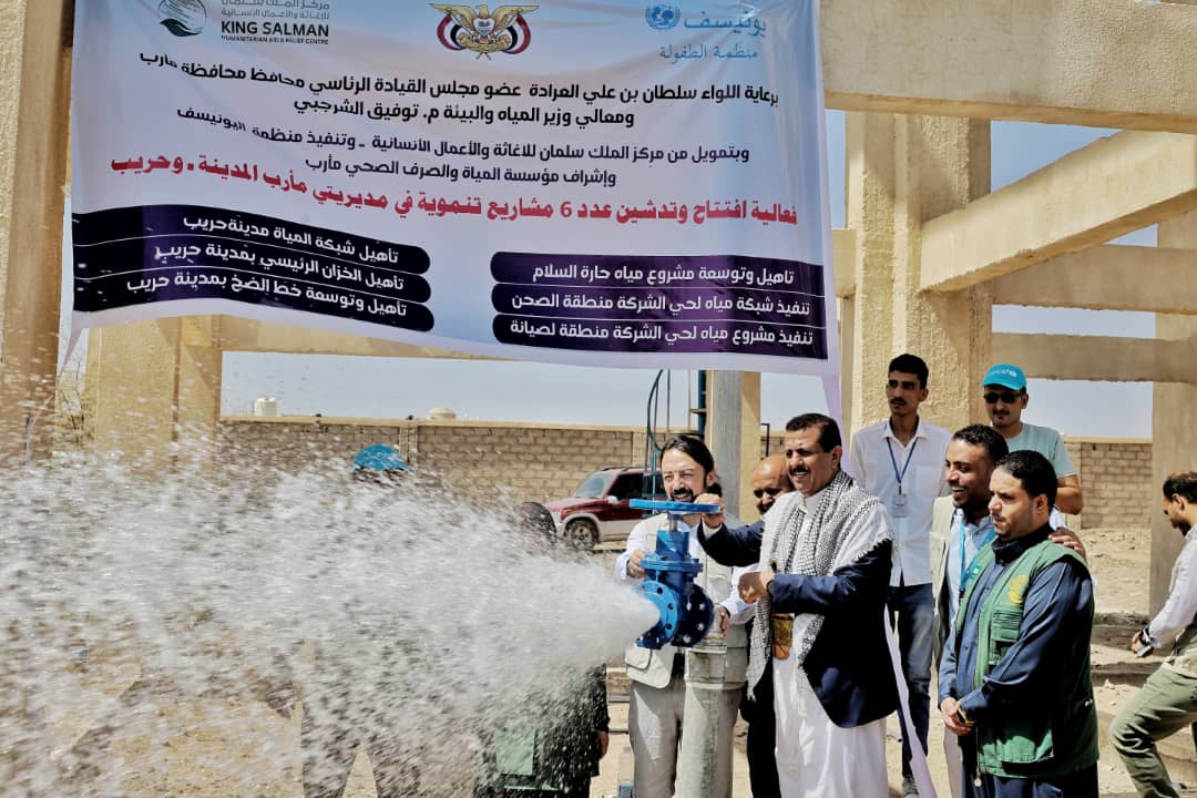 وكيل مأرب يفتتح 7 مشاريع مياه وصرف صحي بتمويل من مركز الملك سلمان للاغاثة
