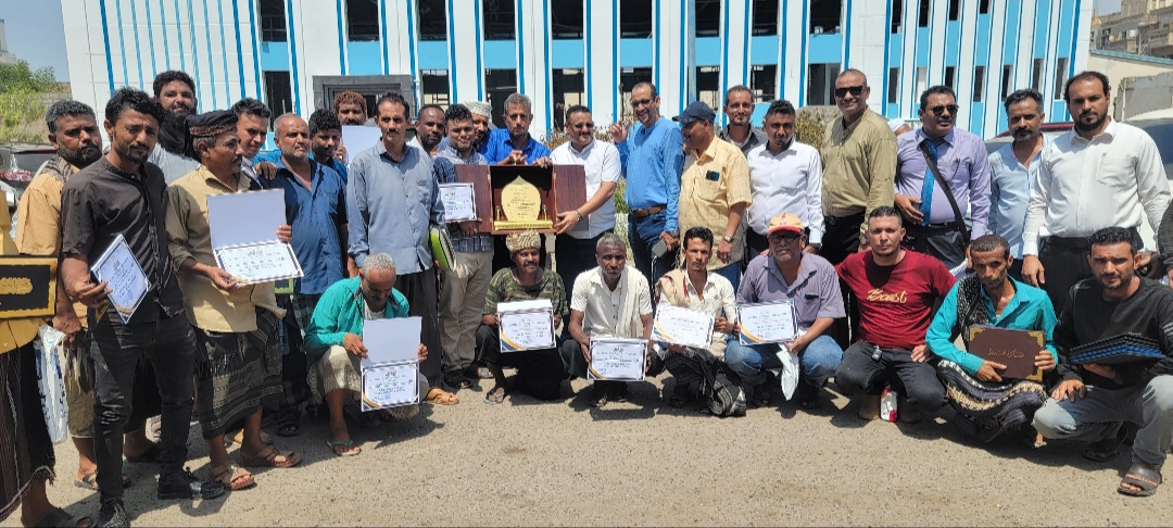 الداؤودي يكرم عدد من عمال المياه والصرف الصحي المبرزين بالمنصورة بعدن