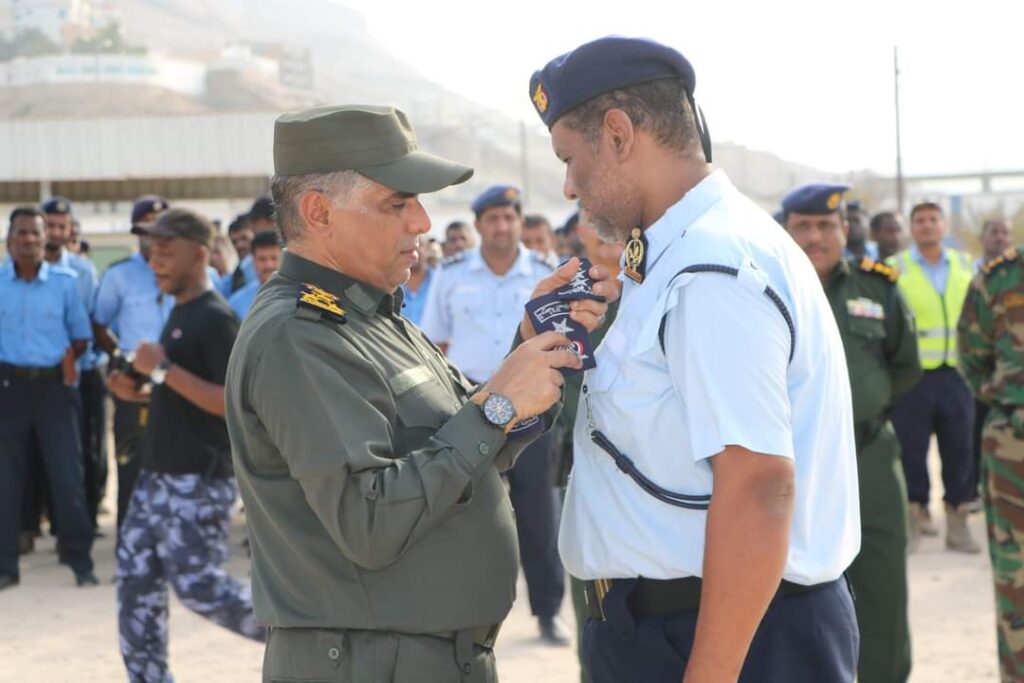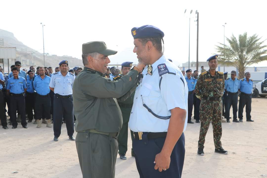 وقلّد العميد المنهالي، خلال الطابور العام لضباط وصف وجنود الإدارات والوحدات الأمنية بالإدارة العامة وشرطة السير، مساعد مدير عام شرطة السير مدير الإصدار الآلي، النقيب فيصل اليزيدي رتبة مقدم بعد صدور القرار الجمهوري، متمنيًا له التوفيق والنجاح في مهامه الوطنية المناطة به، مشيدًا بجهوده الحثيثة في تطوير الأداء بقسم الإصدار الآلي الذي يعد ركيزة أساسية في ضبط العملية الأمنية بالمحافظة، إلى جانب جهوده المبذولة في مساندة تأسيس أقسام الإصدار الآلي بعدد من المحافظات المحررة.