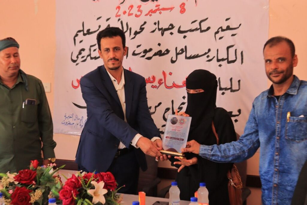 جاء ذلك خلال الحفل التكريمي الذي نظمه جهاز محو الأمية وتعليم الكبار بساحل حضرموت، لعدد من قصة نجاح محو الأمية، الذي يأتي بالتزامن مع اليوم العالمي لمحو الأمية 8 يناير.