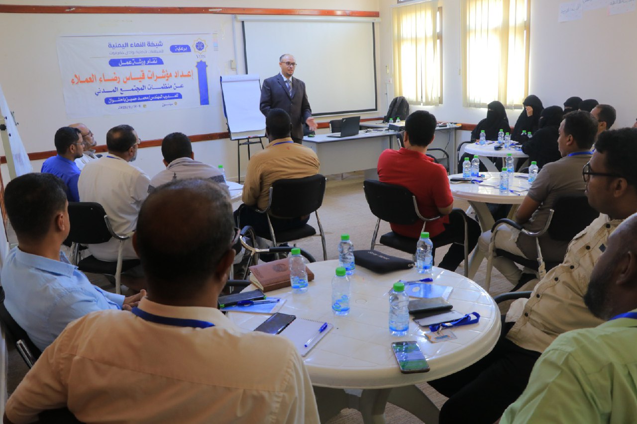 وأوضح مدير مكتب شبكة النماء بوادي حضرموت مبارك بن شهاب، أن الورشة تأتي في إطار الاهتمام بكوادر المنظمات لما من شانه أن يساعد قيادة المنظمة على اختيار التدريب المناسب لكوادرها للارتقاء بالعمل المؤسسي والعمل على تطويره بما يتناسب مع متطلبات المرحلة الراهنة وينمي قدرات العاملين في كافة المجالات..داعيا المشاركين إلى عكس مخرجات الورشة في تصميم وإعداد كل منظمة استمارة قياس رضاء تتناسب وطبيعة عملها وتتلاءم مع الواقع المحيط بها.