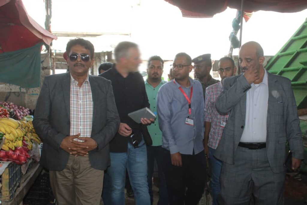 رافق المدير العام لمديرية مدينة المكلا العميد عبدالله سالم بايعشوت و رئيس الهيئة العامة للمصائد في البحر العربي بحضرموت وشبوة وسقطرى يسلم بابلغوم صباح اليوم مدير وحدة الإنشاءات بمشروع تعزيز الصمود والمشاركة على المستوى المحلي باليمن السيد رالف قروتينهوف في النزول الميداني لتفقد سير العمل بمشروع إعادة تأهيل مركز الإنزال السمكي بالسوق المركزي بحي العمال بمنطقة الشرج الذي ينفذ بتمويل من الحكومة الألمانية عبر الوكالة الألمانية للتعاون الدولي GIZ ضمن مشروع تعزيز الصمود والمشاركة على المستوى المحلي باليمن.