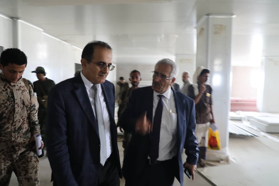 واستمع الوزير يرافقه الوكيل لقطاع الرعاية الصحية الأولية الدكتور علي احمد الوليدي ورئيس المكتب الفني بوزارة الصحة الدكتور مصلح التوعلي، من المدير العام التنفيذي للهيئة الدكتور عبدالقادر احمد الباكري إلى شرح حول التوزيع الإنشائي للمبنى المكون من أربعة طوابق ونوعية المواد المستخدمة في عملية البناء ومدى مقاومتها للحرائق والحرارة والبكتيريا .