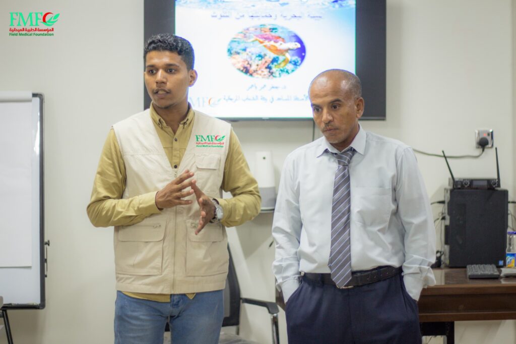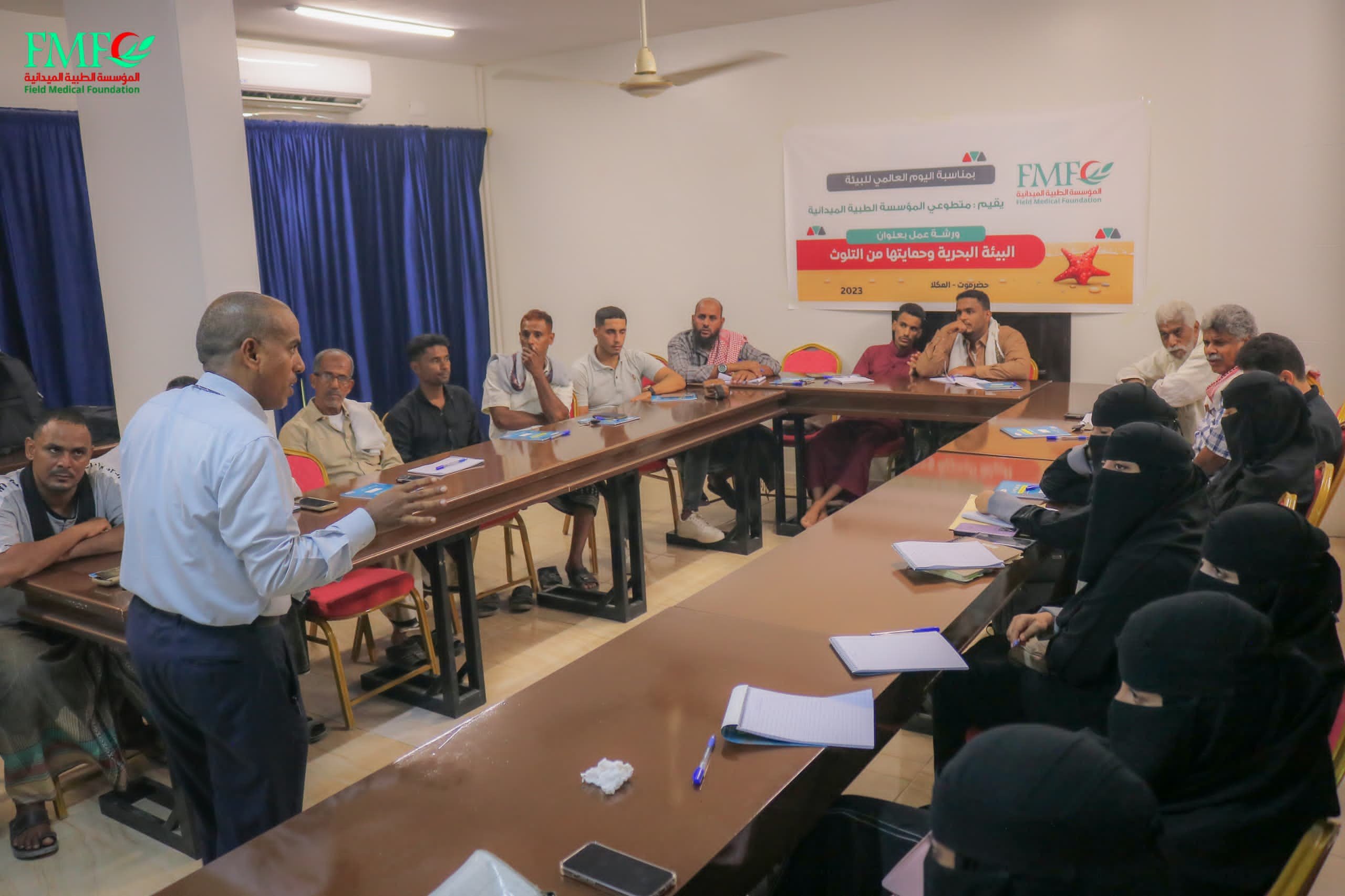 أقام متطوعي المؤسسة الطبية الميدانية بساحل حضرموت FMF ورشة عمل في مجال البيئة البحرية وحمايتها من التلوث، استهدفت الصيادين والغواصين والجمعيات البحرية ومنظمات المجتمع المدني وكذا المهتمين بمجال الدراسات البيئية والأحياء البحرية،وأيضا الباحثين في مجال البيئة،وذلك مساء اليوم بمدينة المكلا.