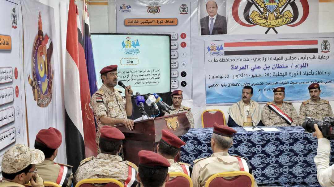 جاء ذلك خلال حضوره، اليوم الأحد، فعالية احتفاء إذاعة 26 سبتمبر التابعة للقوات المسلحة، بالذكرى الأولى لانطلاقها من محافظة مأرب كصوت للقوات المسلحة..مشيداً بالجهود الإعلامية والتوعية الكبيرة التي بذلتها وتبذلها إذاعة 26 سبتمبر.