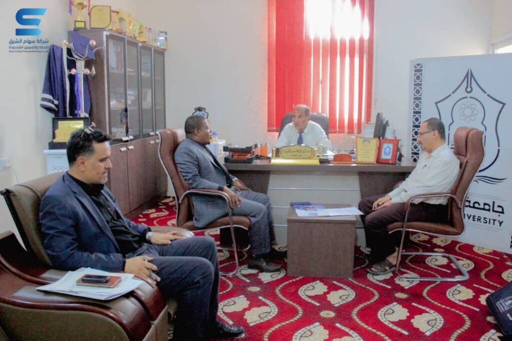 ناقش لقاء عقد اليوم بمدينة سيئون محافظة حضرموت برئاسة المدير العام لشركة سهام الشرق للتجارة والتسويق المحدودة أ. محمد عوض باعساس ورئيس جامعة سيئون أ.د.محمد عاشور الكثيري .