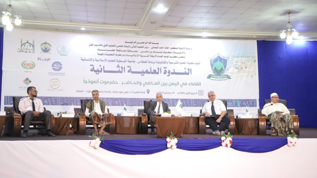 وأكد الامين العام اهمية الندوة التي تناقش احد اهم قضايا المجتمعات وأساسها وعمادها وهو القضاء أساس العدل الذي به ينعم الناس بالطمأنينة والنظام وبدونه تعم الفوضى وتتجسد لغة الغاب، موضحًا ان حضرموت عرفت في تاريخها رجالًا صدقوا ما عاهدوا الله عليه علماءً وقضاةً نشروا العلم في أرجاء المعمورة مجسدين مداميك العدل بالصدق والامانة وقول كلمة الحقمن وجسدوة واقعًا في سلوكهم واحكامهم فكانوا محل تقدير المجتمع، مؤكدًا ان قيمة الندوة تأتي في انها تبرز للجيل الجديد صدق اولئك الرجال الذين كانوا يمثلون ميزان العدل والعنوان الابرز لمرحلة مهمة من تاريخ حضرموت، مثمنًا جهود جامعة الوسطية الشرعية في تنظيم الندوة واستعراض سيرة حياتهم وابرز احكامهم وربطها بفقه الواقع وتحديات العصر من واقع فقه التحولات، الى جانب حرص الجامعة على نشر العلم الشرعي وفق مبادئ الوسطية والخلق القويم، مؤكدًا ان العدل هو الفيصل ما بين الفوضى وسيادة الدولة والنظام والقانون ومن هذا المنطلق تحرص السلطة المحلية في حضرموت بقيادة المحافظ الاستاذ مبخوت مبارك بن ماضي على ايلاء السلطة القضائية اهتمامًا خاصًا وعلى ديمومة العلاقة المتميزة بين السلطة التنفيذية والسلطة القضائية لتحقيق العدل والنظام في الحياة العامة وقد تبنت السلطة المحلية بناء وتشييد عدد من المحاكم والنيابات العامة حرصًا منها على تسهيل عمل القضاء.