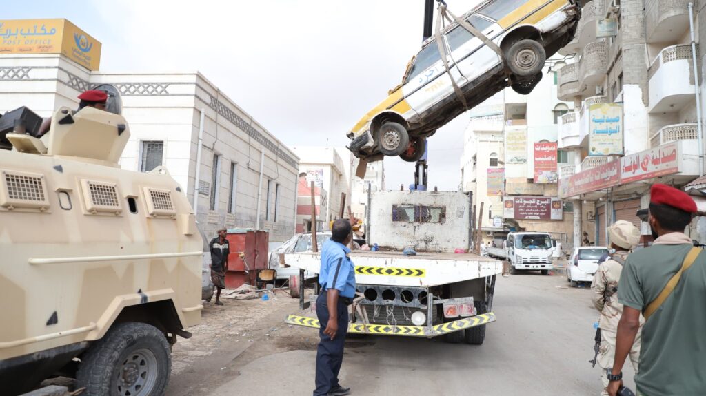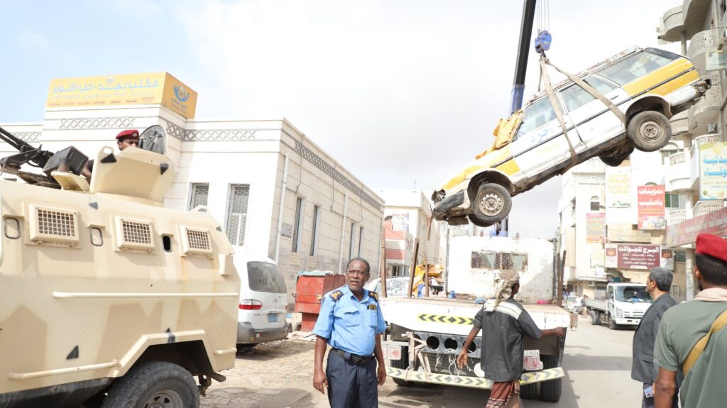 واطلع المحافظ على حملة الإزالة التي تنفذها الإدارة العامة للأمن والشرطة بساحل حضرموت وإدارة شرطة السير ومكتب الاشغال العامة والطرق بالساحل، مستمعًا من مدير عام الأمن والشرطة العميد مطيع المنهالي، ومدير شرطة السير العقيد معمر المشجري الى الاجراءات المشددة لازالة آثار الباعة ومنع البيع في هذا الموقع ورفع السيارات الخردة والواقفة على جانبي الطريق التي يتم استخدامها للبيع.