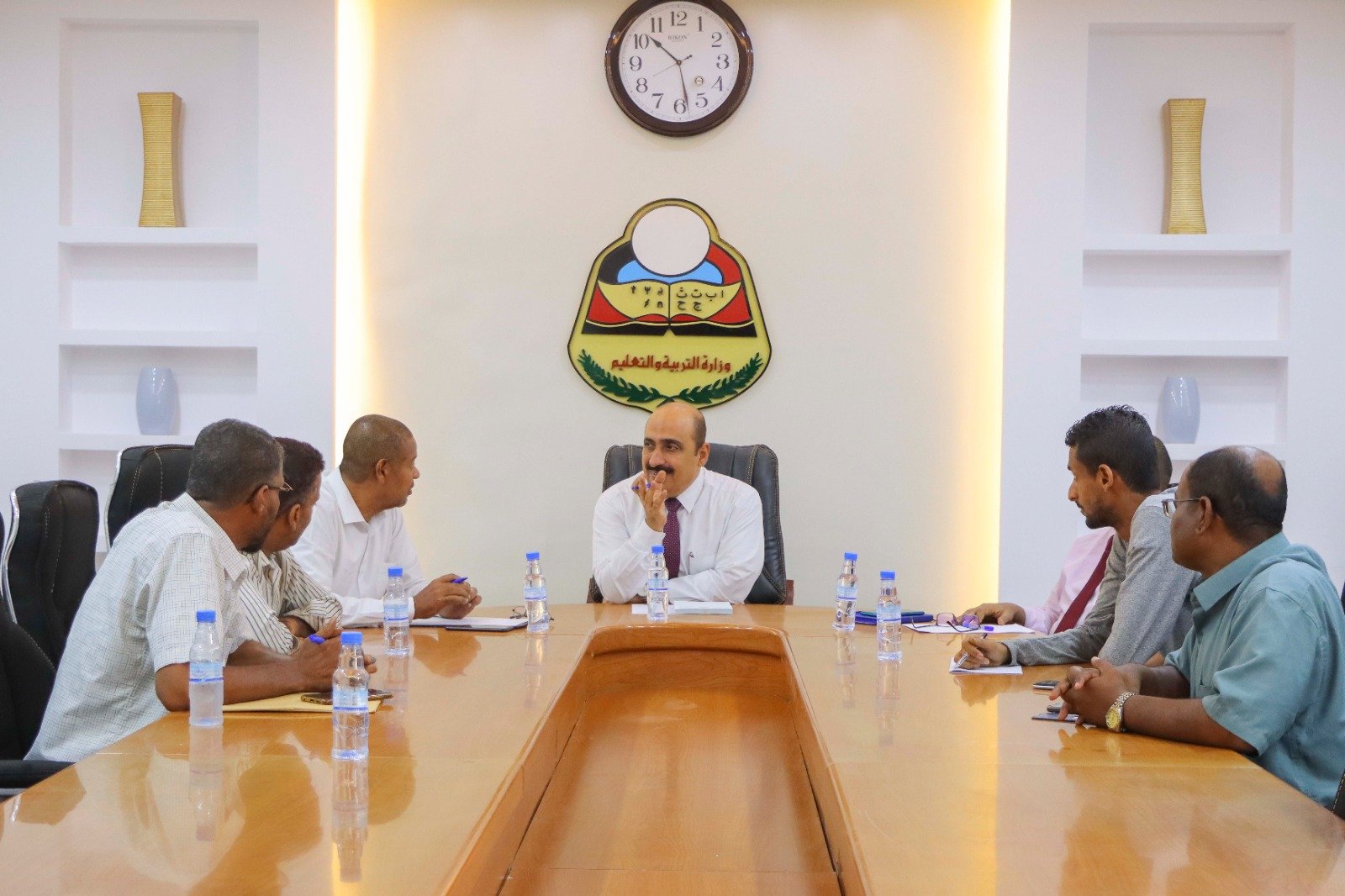 ناقش اجتماع عقد صباح اليوم بمكتب تربية ساحل حضرموت آلية فتح حسابات بنكية لموظفي مكتب وزارة التربية والتعليم بساحل حضرموت بناءً على قرار البنك المركزي الأخير والذي يقضي باستلام الموظفين رواتبهم عبر البنوك.