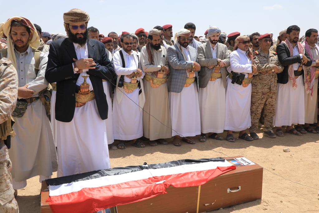 وخلال موكب التشييع المهيب الذي حضره عدد من المحافظين وأعضاء مجلسي النواب والشورى ووكلاء الوزارات ووكلاء محافظة مأرب وقيادات عسكرية وأمنية ومشايخ وأعيان ورجال أعمال وشخصيات اجتماعية ودينية بارزة، وأسرة الفقيد وزملائه ومحبيه وأصدقائه وجمع غفير من أبناء المحافظة، الذين أشادوا بمناقب الفقيد ودماثة أخلاقه وأدواره الوطنية والاجتماعية والإنسانية..مشيرين إلى أنه برحيل الفقيد فقدت محافظة مأرب والوطن أحد الرجال المخلصين، الذين كان لهم أدوار وطنية واجتماعية وإدارية بارزة في الدفاع عن الوطن والثورة والجمهورية، وخدمة مجتمعه في إصلاح ذات البين وتعزيز القيم النبيلة، فضلاً عن خدمة مجتمعه من خلال مسؤولياته الوظيفية الإدارية في الدولة..منوهين بإيمان الفقيد العميق بالجمهورية وثورة 26 سبتمبر المجيدة ومبادئها وأهدافها السامية، واستجابته للواجب الوطني لاستعادة مؤسسات الدولة المختطفة من قبل مليشيات الحوثي الإرهابية المدعومة من إيران ، سائلين المولى عز وجل أن يتغمد الفقيد بواسع رحمته ويسكنه فسيح جناته وأن يلهم أهله وذويه الصبر والسلوان.