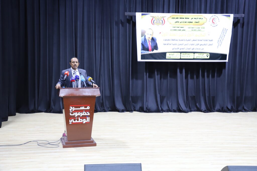 وجرى في ختام الحفل تكريم المحافظ لاهتمامه بالقطاع الصحي، وتكريم كوادر حضرموت الاوائل الذين عملوا بشرف وانسانية وافنوا سنوات اعمارهم في التخفيف عن آلام المرضى.