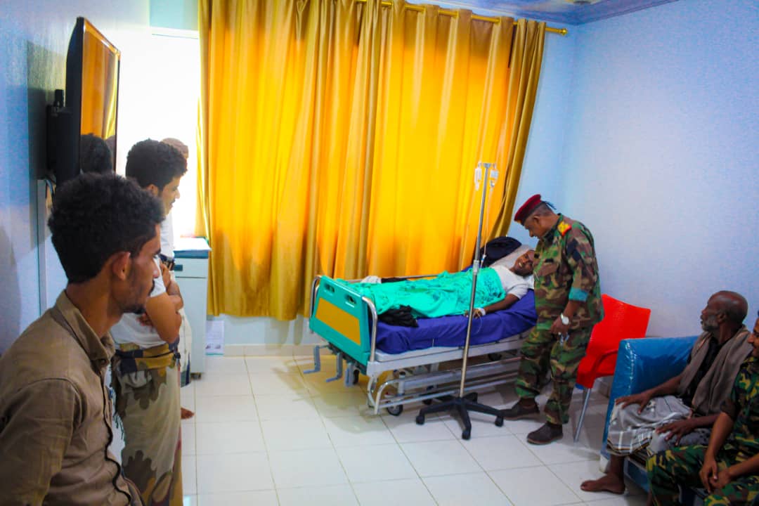 قائد لواء الريان بالمنطقة العسكرية الثانية يطمئن على صحة جريح عملية “ميزان العدل