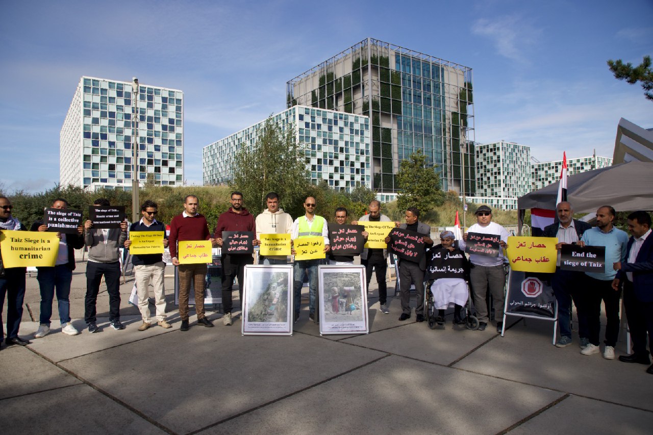 نظم المركز الهولندي اليمني للحقوق والحريات، والرابطة الإنسانية للحقوق بالتعاون مع منظمة ميون للحقوق ومؤسسة تمكين المرأة، والمركز اليمني لتأهيل ضحايا الانتهاكات والتعذيب، وقفة احتجاجية أمام محكمة الجنايات الدولية بمدينة لاهاي الهولندية، للتنديد بحصار مدينة تعز.
