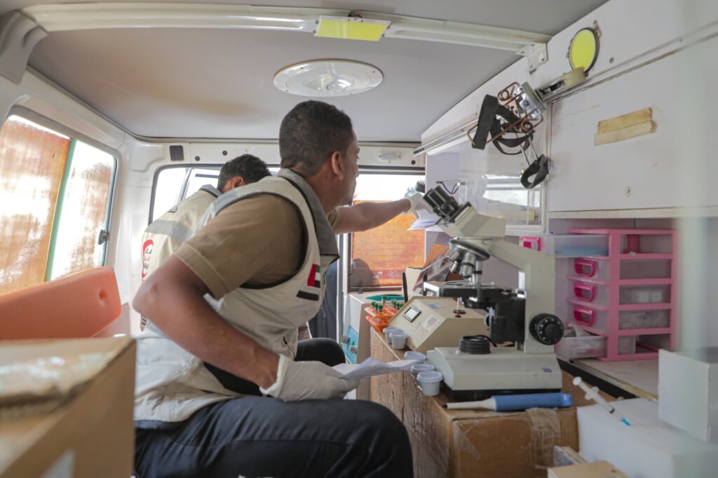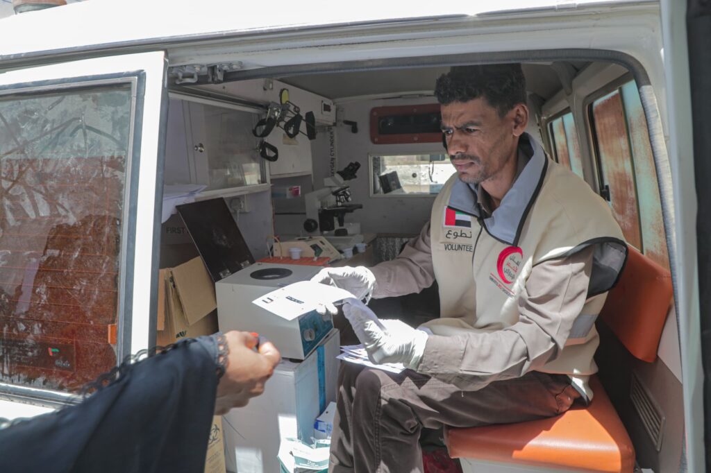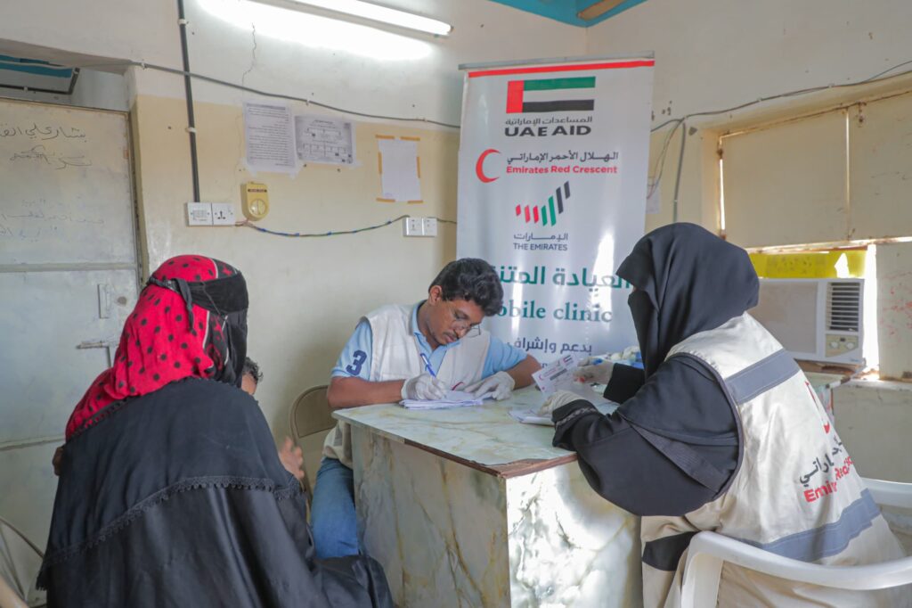 تواصل العيادة الطبية المتنقلة التي تسيّرها هيئة الهلال الأحمر الإماراتي، تقديم خدماتها لسكان القرى البعيدة في مختلف مناطق محافظة حضرموت، ضمن الدور الإنساني الذي تقوم به دولة الإمارات العربية المتحدة لتخفيف معاناة السكان في المناطق النائية التي لا تتوفر فيها المستشفيات او الكادر الطبي.