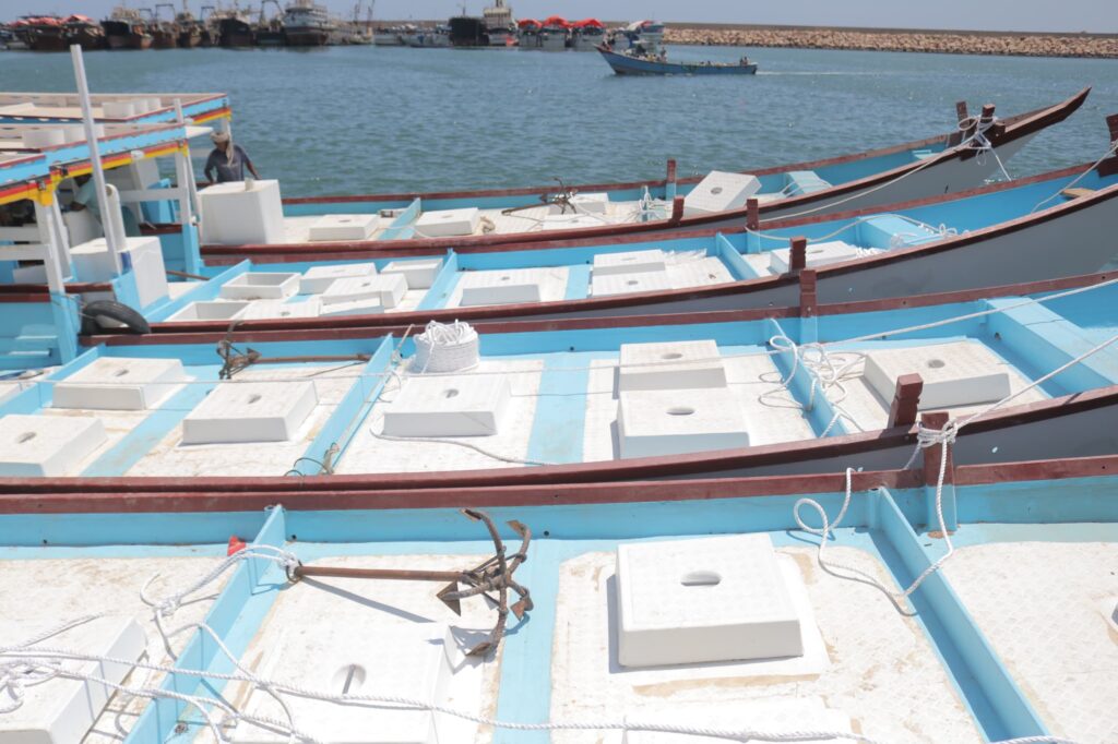 و تشمل القوارب على جهاز كاشف للاسماك و أدوات للسلامة المهنية ، مع مراعاة في التصميم الكلي للقوارب كمحاولة لتخفيف الكلفة التشغيلية للصياد ، و يأتي هذا الدعم امتداداً للتدخل العاجل للبنية التحتية لمراكز الانزال السمكية على مستوى الشريط الساحلي ، و يستفيد من هذه القوارب عدد ست جمعيات سمكية كمرحلة أولى موزعة على مديريات الشحر و المكلا و الريدة و قصيعر و مديرية بروم ميفع .