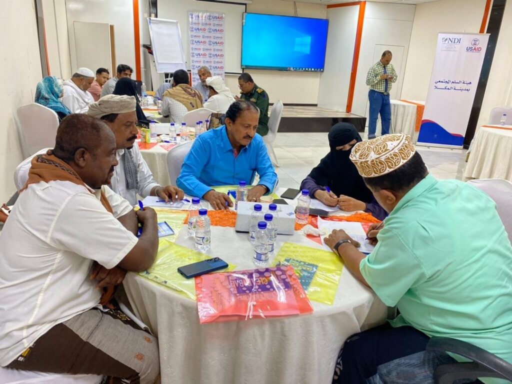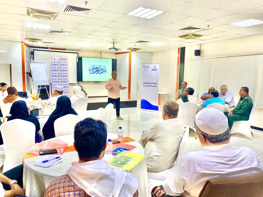 دُشنت صباح اليوم بمدينة المكلا، الورشة التأسيسية لهيئة السلم المجتمعي بمدينة المكلا، بمشاركة وكيل محافظة حضرموت الأستاذ حسن سالم الجيلاني، وعدد من مديري عموم المكاتب المعنية بالمحافظة، التي ينفذها المعهد الوطني الديموقراطي NDI، بتمويل من USAID.