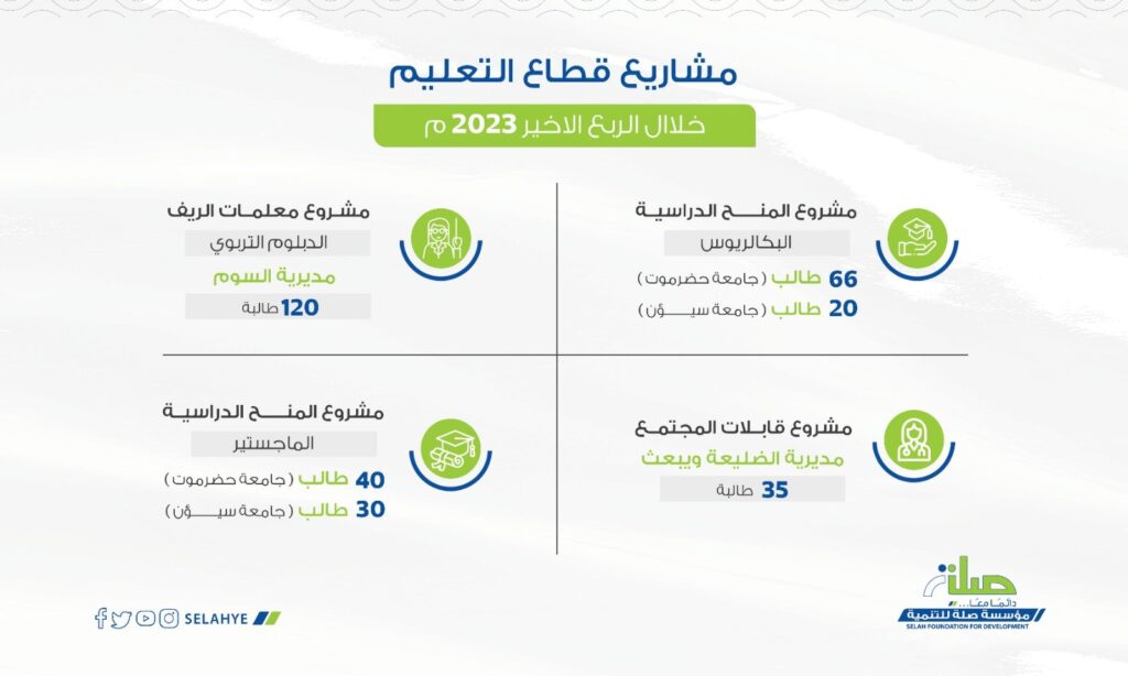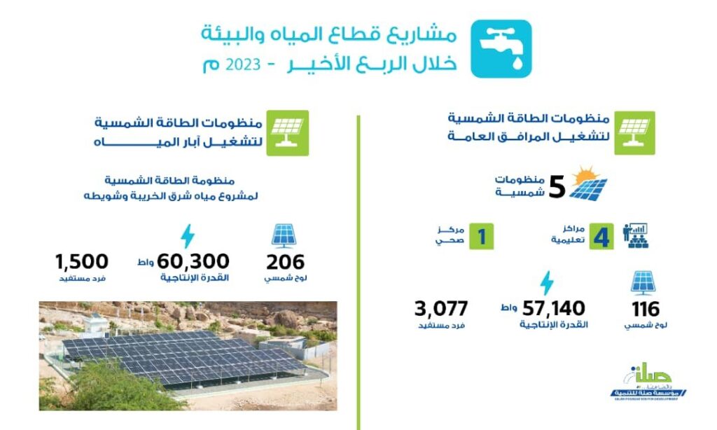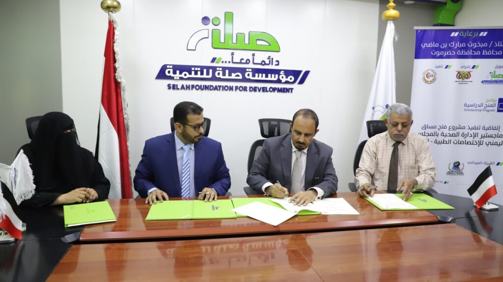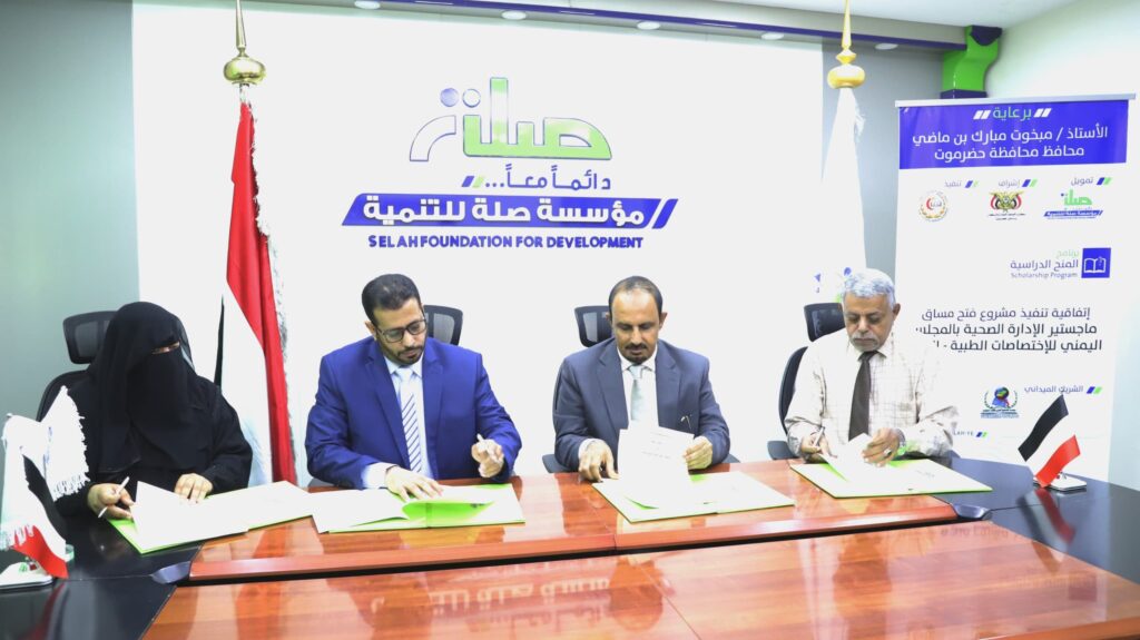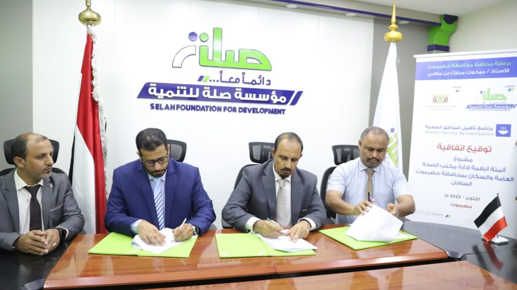 حيث رعى المحافظ خلال زيارته اليوم لمؤسسة صلة توقيع اتفاقيات لمشاريع في قطاعات حيوية، منها مشروع منظومة الطاقة الشمسية لتزويد مشروع مياه شرق الخريبة وشويطة بمديرية دوعن بقدرة إنتاجية تبلغ 60 كيلو واط سيستفيد منه 1500 نسمة، ومشروع فتح مساق ماجستير الإدارة الصحية بالمجلس اليمني التخصصي الطبي والذي يستهدف تعليم 15 طالبًا وطالبة في مرحلة الماجستير، بالإضافة إلى مشروع أتمته أنظمة مكتب وزارة الصحة العامة والسكان للتحول من النظام الورقي إلى النظام الإلكتروني وترتيب عمل الإدارات والمخازن لأكثر من 200 موظف، ومشروع استصلاح أراضي زراعية في مديرية بروم ميفع عبر استصلاح 3 أراضٍ زراعية وتوفير السماد والبذور.