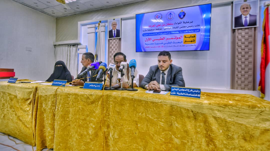 اعلن في محافظة مأرب، اليوم، عن اقامة المؤتمر الطبي الأول الذي تنظمه جامعة اقليم سبأ بالشراكة مع المجلس اليمني للاختصاصات الطبية خلال الفترة من 25 وحتى 26 مايو المقبل، تحت شعار (البحث الطبي ضرورة عصرية).