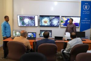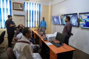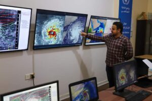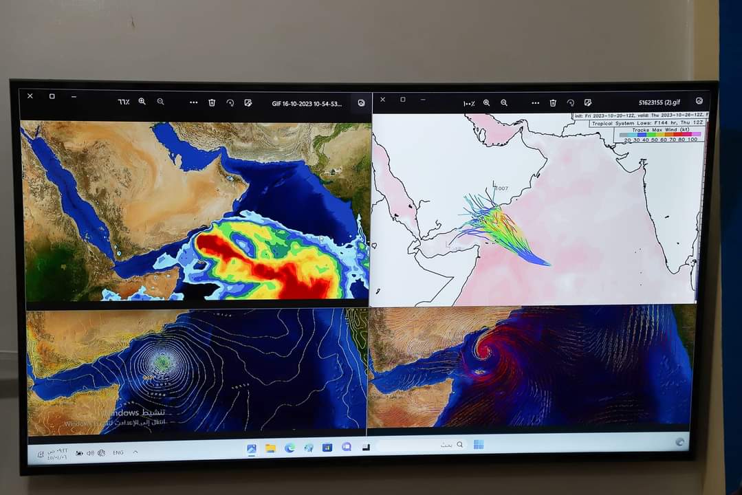 واستمع المحافظ من مدير مركز الإنذار المبكر من الكوارث والمخاطر المناخية المتعددة بحضرموت المهندس عبدالرحمن حميد، ونائبه حسين العمودي ، الى آخر بيانات التنبؤات العددية الصادرة عن المركز وتحاليل خرائط الرصد السطحية التي تشير إلى تطور الحالة المدارية إلى (عاصفة إعصارية) في وسط غرب بحر العرب بهبات رياح مركزية تتراوح بين (55 – 63) عقدة تبعد عن أقرب نقطة من سواحل محافظات بلادنا الشرقية (850) كيلومتر وعن جزيرة سقطرى (460) ، تتحرك باتجاه شمال غرب بحر العرب خلال (72) ساعة القادمة ، مع تعمقها إلى إعصار مداري من الدرجة الأولى خلال (24) ساعة القادمة.