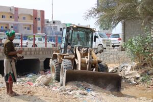 تفقد وكيل محافظة حضرموت للشؤون الفنية رئيس لجنة الطوارئ المهندس آمين أحمد بارزيق بمعية المدير العام لمكتب وزارة الأشغال العامة والطرق بساحل حضرموت المهندس صالح فائز العمري يرافقهم مدير مشروع النظافة والتحسين بمديرية المكلا الأستاذ حيدر العطاس تصفية عبارات مجرى مياة الأمطار والسيول ضمن إلاجراءات الاحترازية لمواجهة إعصار تيج.