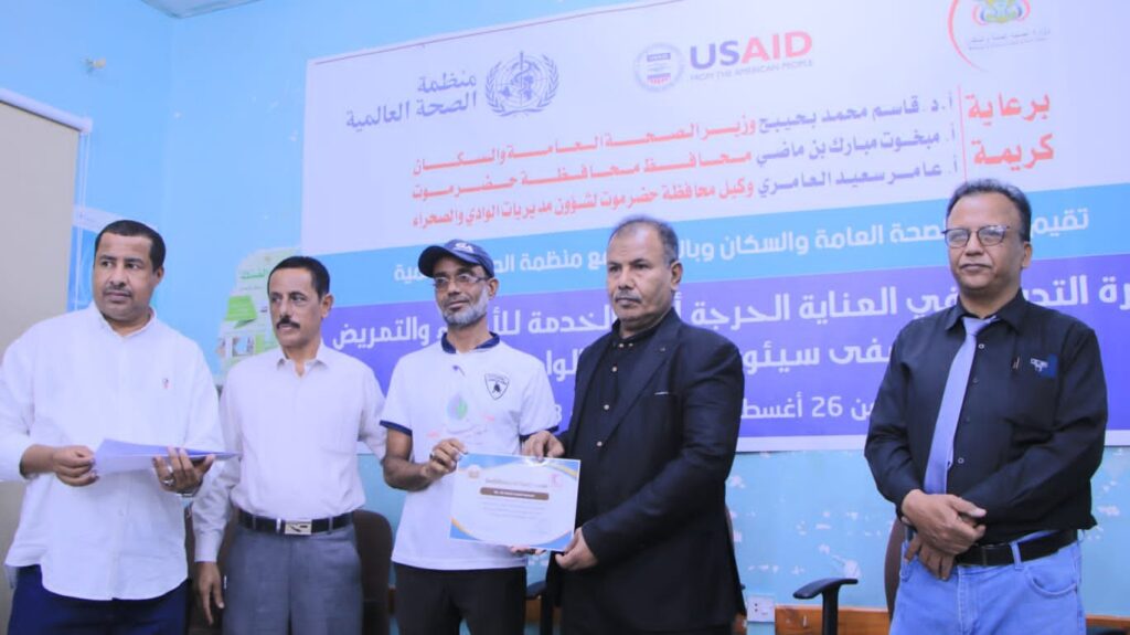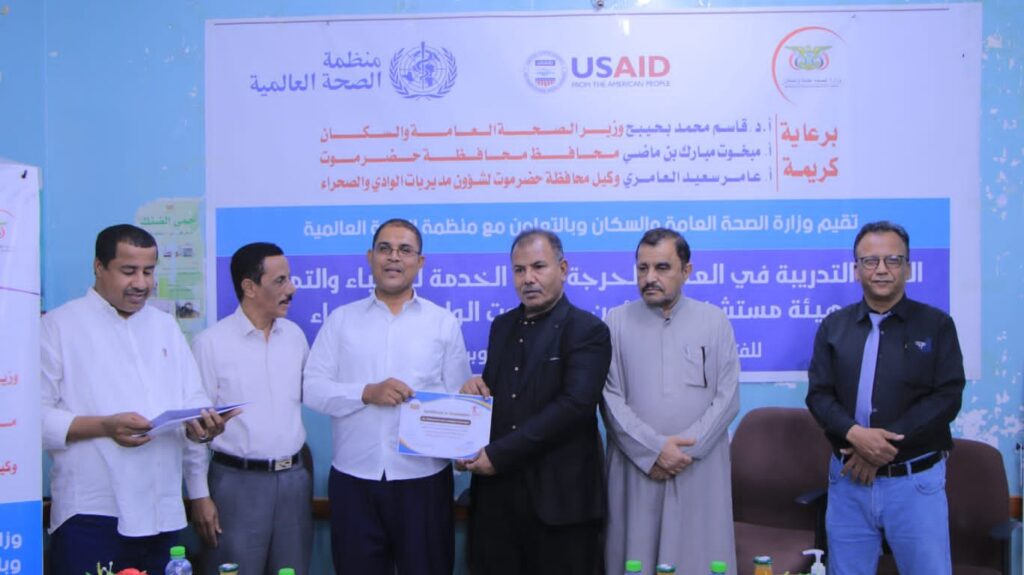 شهد وكيل محافظة حضرموت لشؤون مديريات الوادي والصحراء،الاستاذ عامر سعيد العامري، صباح اليوم، اختتام الدورة التدريبية في “العناية الحرجة اثناء الخدمة” لأطباء وممرضي هيئة مستشفى سيئون العام.