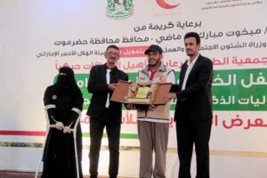 بتكليف من محافظ حضرموت الأستاذ مبخوت بن ماضي.. دشن وكيل محافظة حضرموت الأستاذ حسن سالم الجيلاني، اليوم بالمكلا، الحفل الخطابي والفني الختامي لفعاليات الذكرى العشرين لتأسيس جمعية الطموح لرعاية وتأهيل المعاقات حركياً، والمعرض التسويقي للأسر المنتجة، بإشراف مكتب وزارة الشؤون الاجتماعية والعمل بالساحل، وتمويل من هيئة الهلال الأحمر الإماراتي.