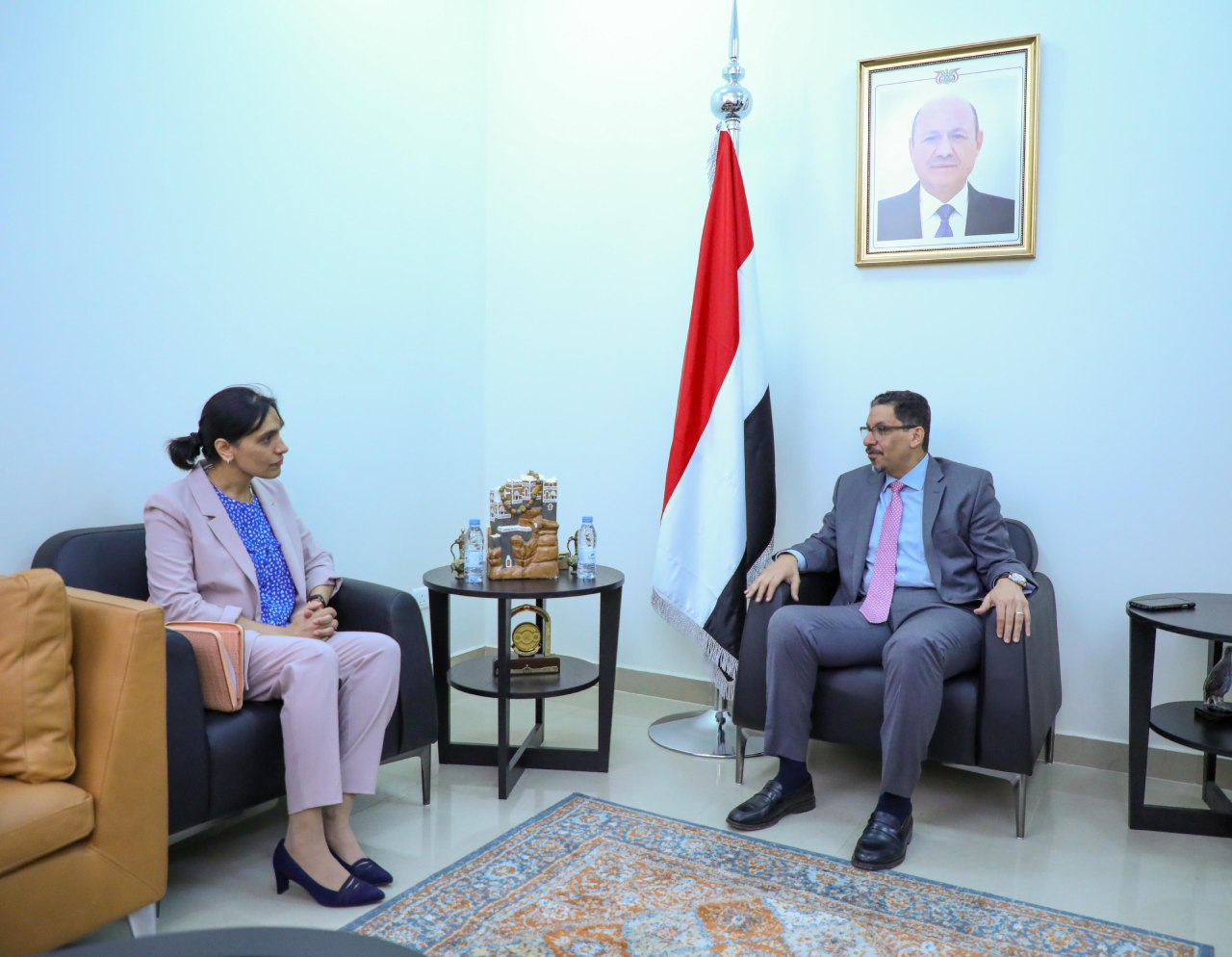 التقى وزير الخارجية وشؤون المغتربين الدكتور أحمد عوض بن مبارك، اليوم، سفيرة بريطانيا لدى اليمن عبدة شريف.